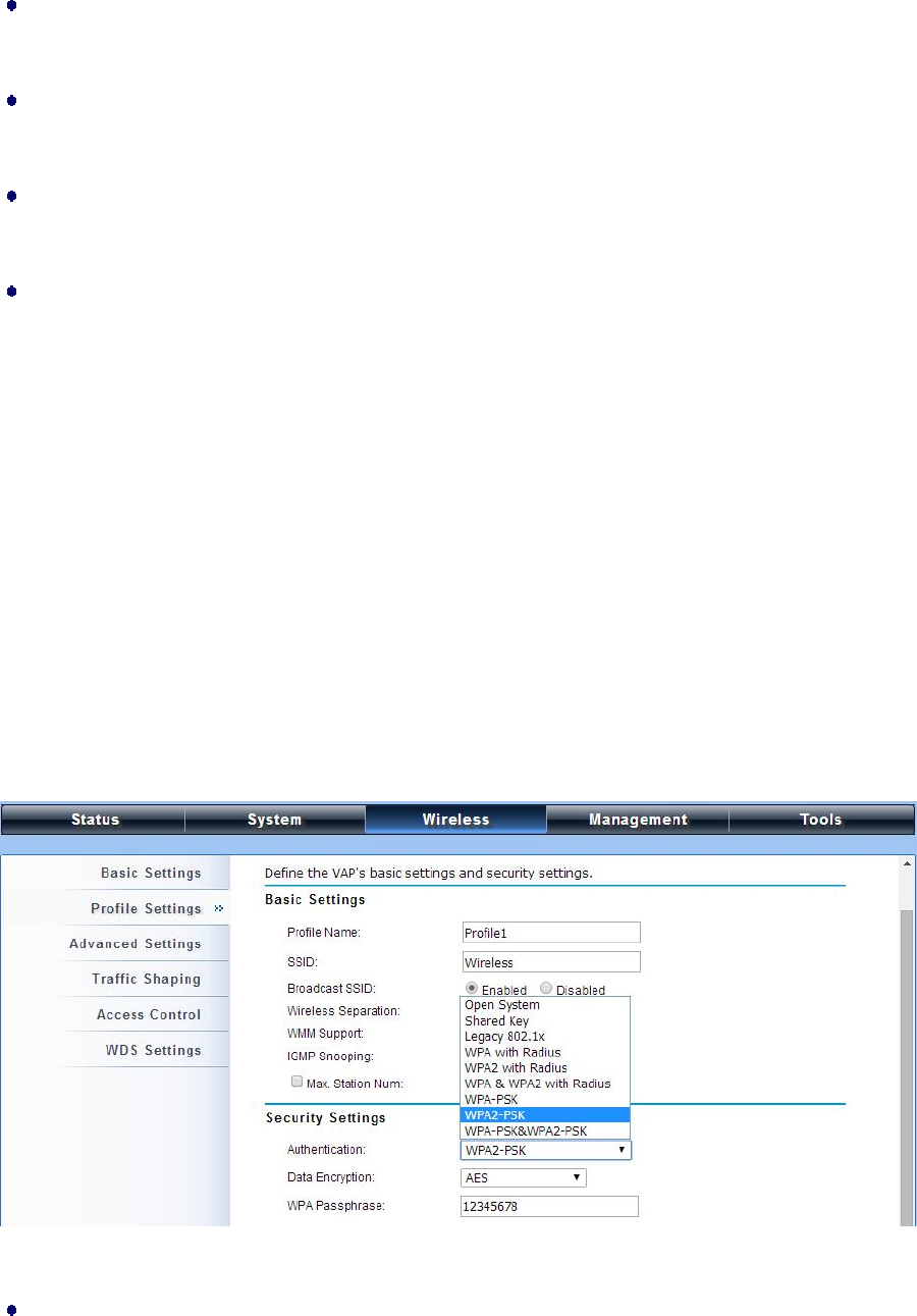 WEP can be configured with a 64-bit, 128-bit or 152-bit Shared Key (hexadecimal number or ACSII).