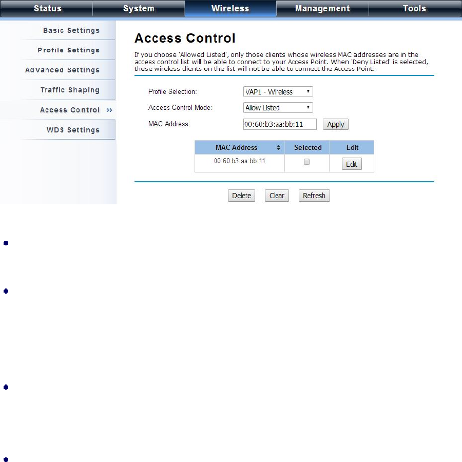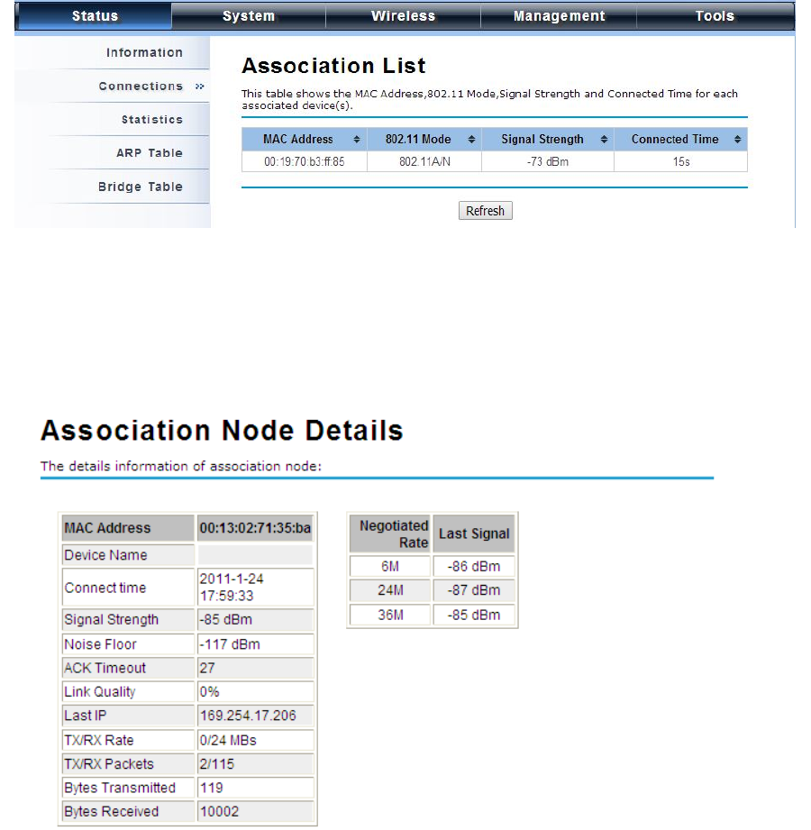 address, signal strength, connection time, IP address, etc. All is read only. Click “Refresh” at the