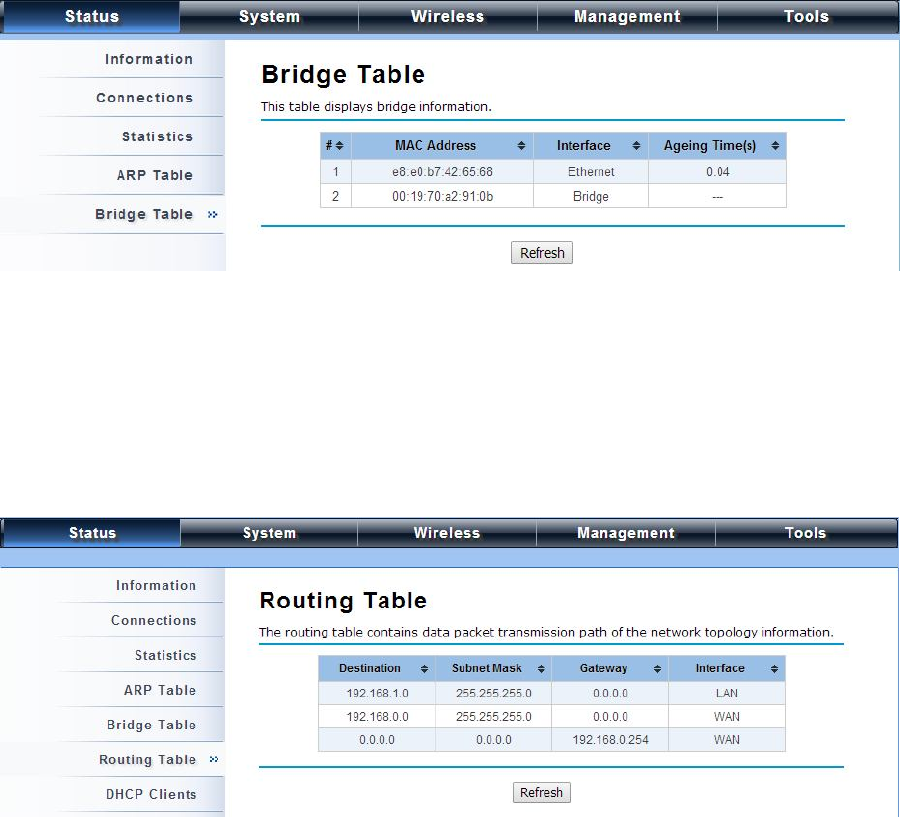 Open “Bridge Table” in “Status” as below. Click “Refresh” to view current connected status..