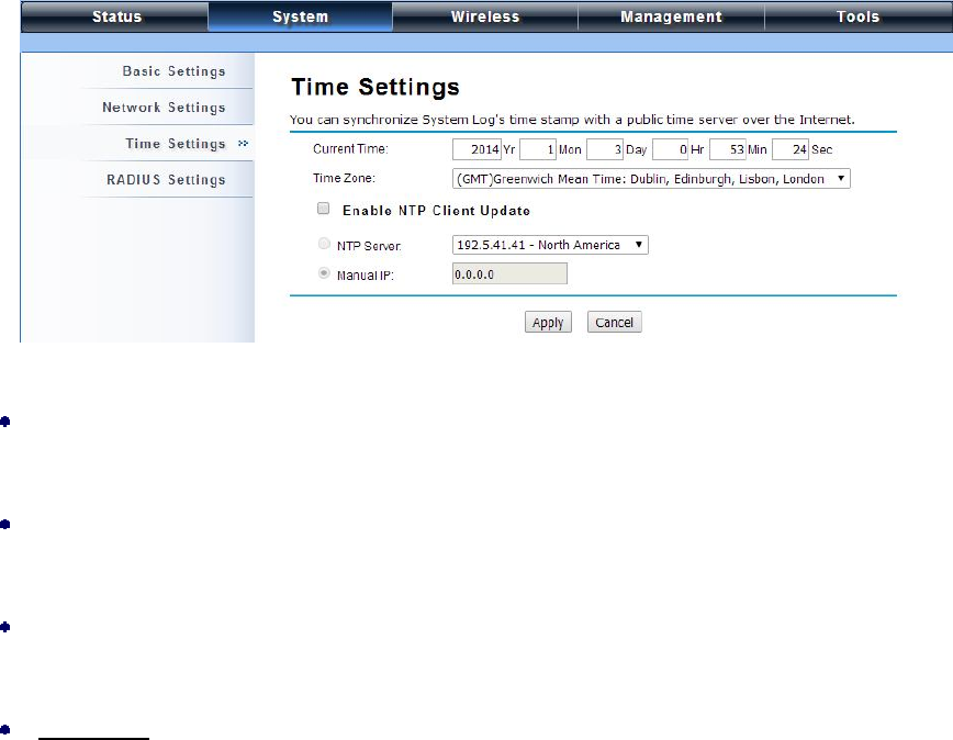 address, signal strength, connection time, IP address, etc. All is read only. Click “Refresh” at the