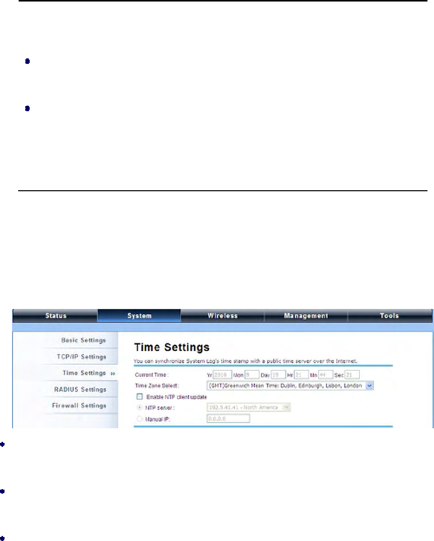 accord with the Internet time. To use this feature, check “Enable NTP Client Update” in advance.