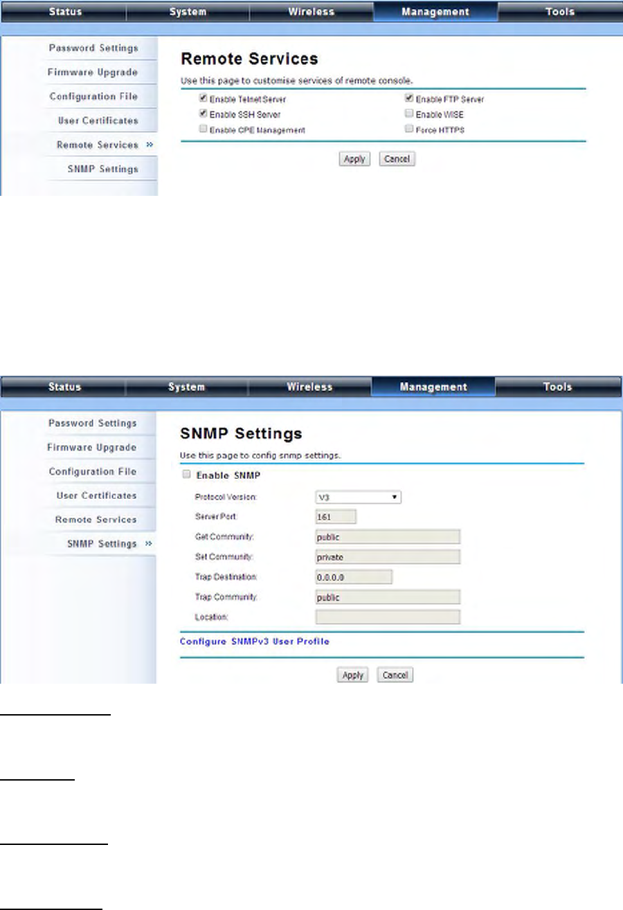 “SNMP Settings” in “Management” shown below. Set the SNMP parameters and obtain MIB file
