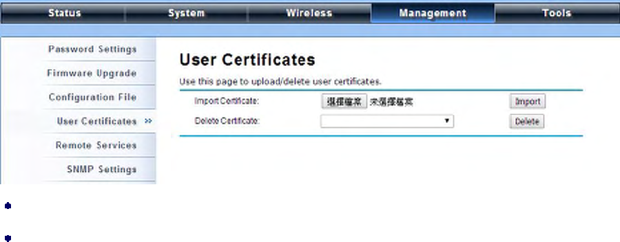 Delete User Certificate: Delete the selected user certificate.