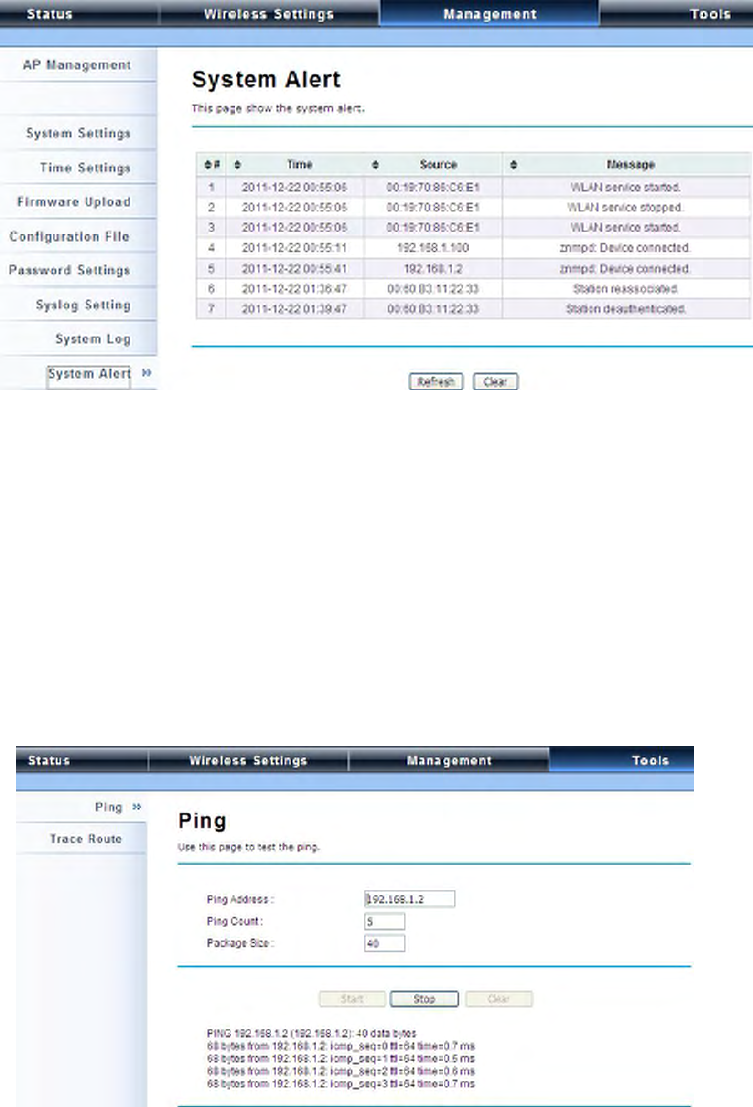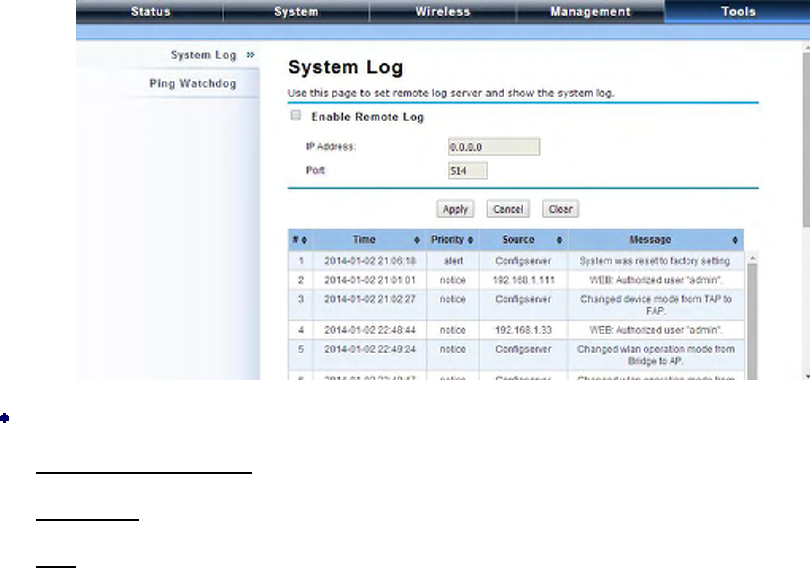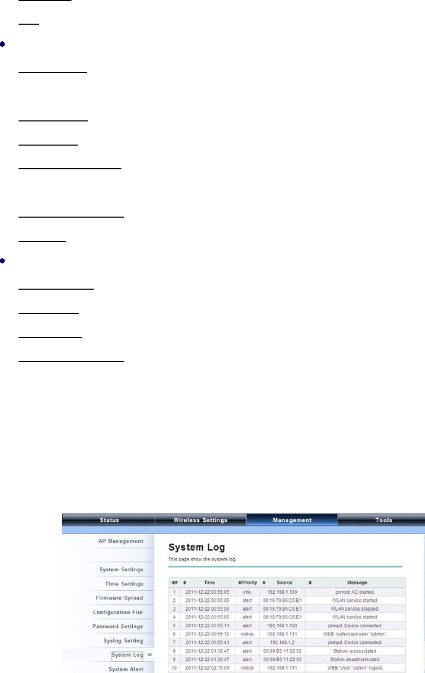 System log is used for recording events occurred on the IEEE 802.11n ZAC Access Point, including