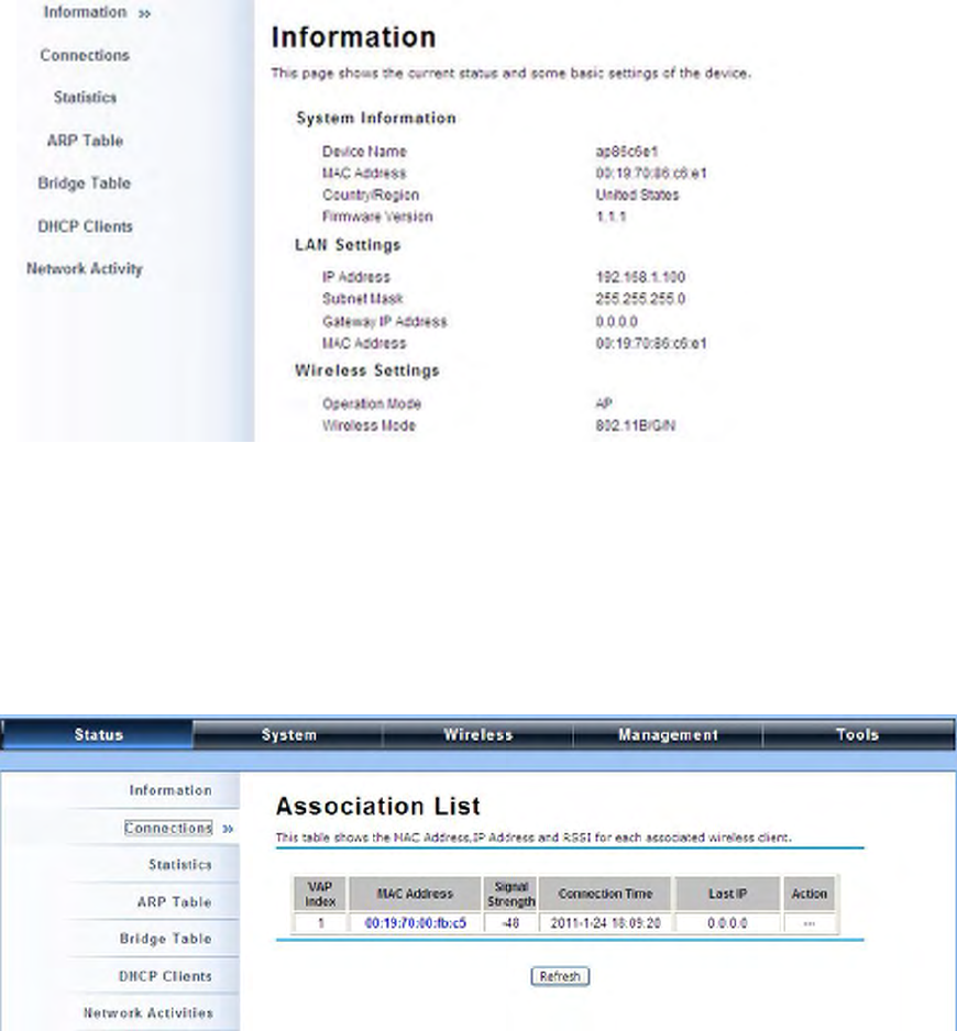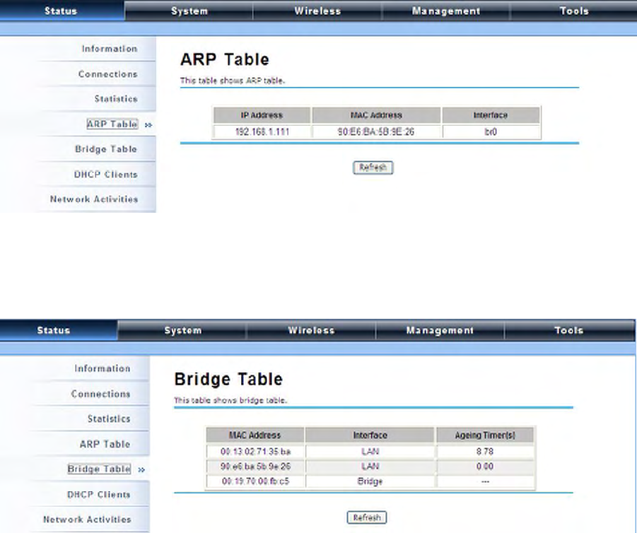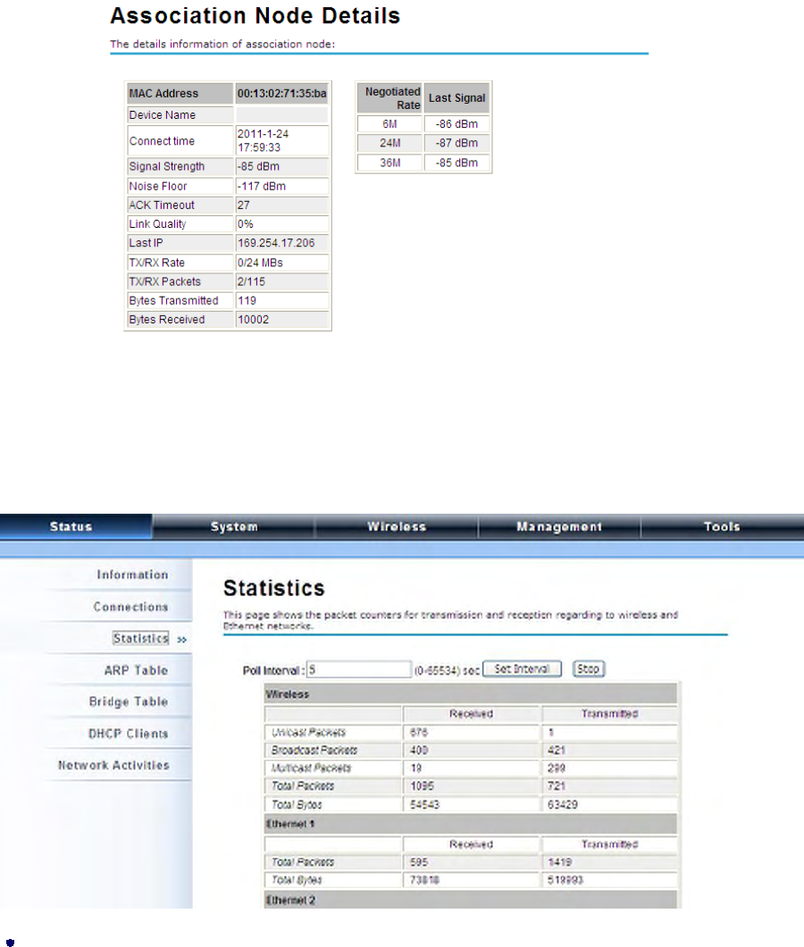 The IEEE 802.11n ZAC Access Points provide two tools to test the link status with other ZAC-managed