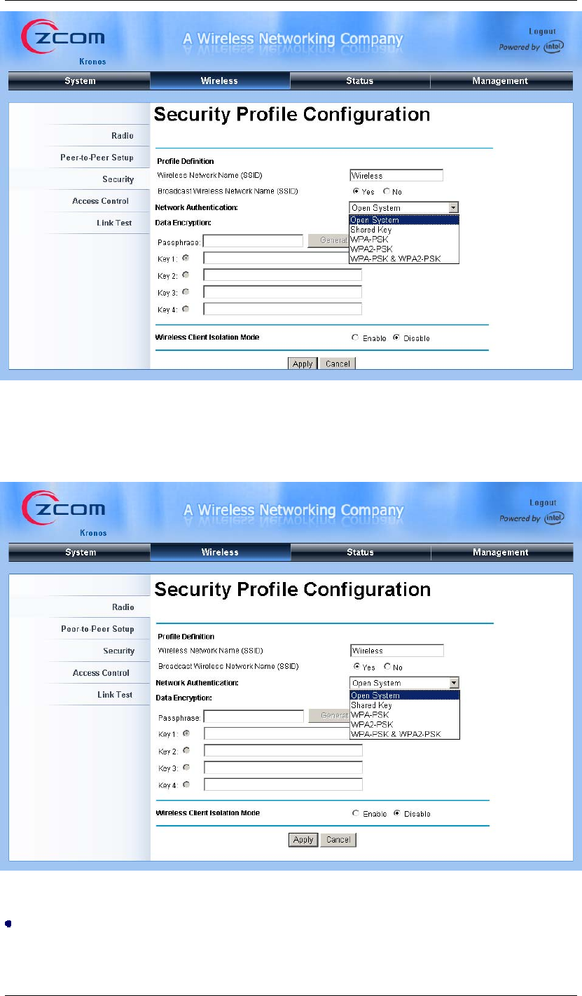 keys manually. These keys must match the ones of other wireless stations or bridges.