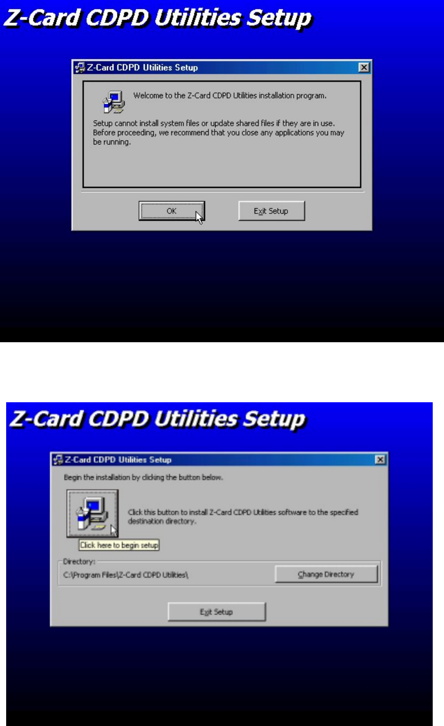 e. Wait for the Z-Card CDPD Utilities Setup window to appear, then click