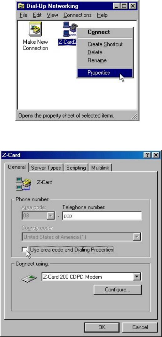 and select Z-Card 210 CDPD Modem (in the type of the modem). Then