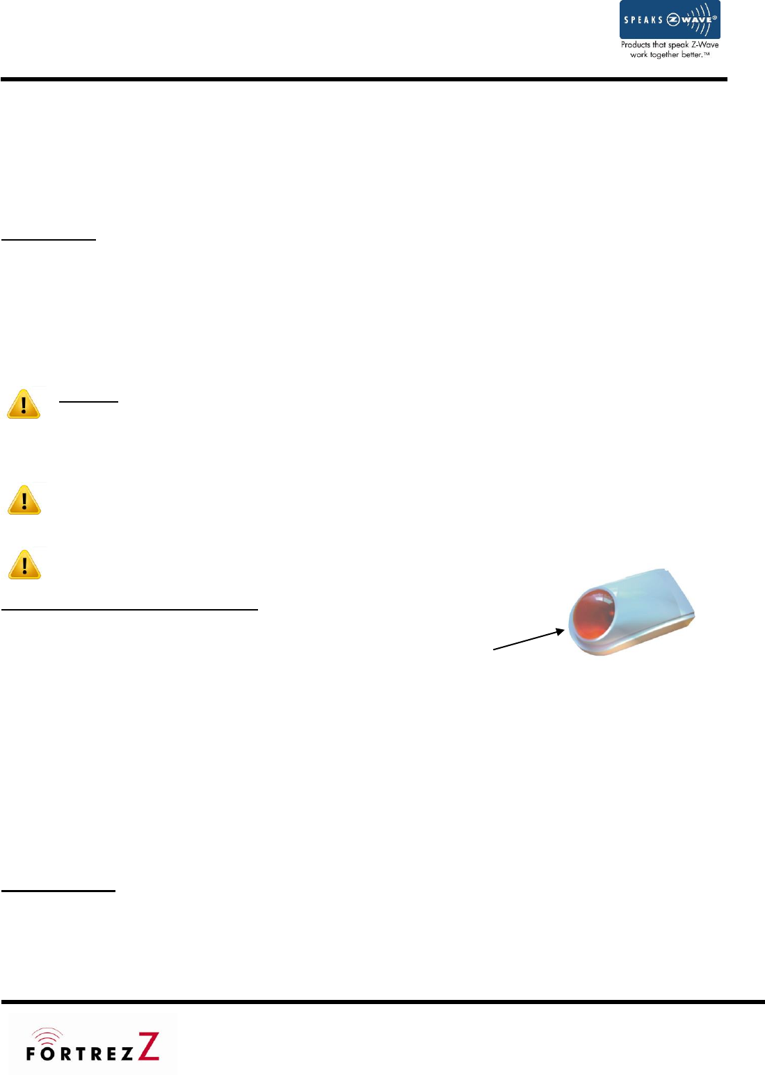 Z Wave B00Hwxzduu Fortrezz Siren Strobe Alarm Manual Thank You For Purchasing The Wireless Water And Freeze Detection WWA 01 User Fortrez