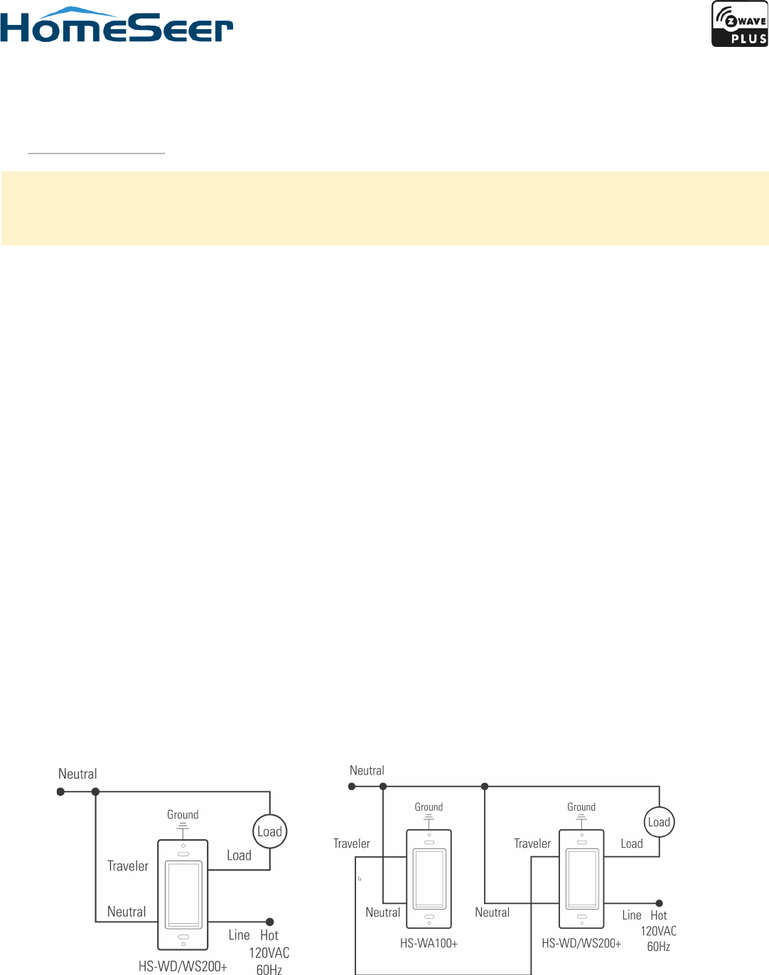 • NEUTRAL - White (this wire is oen ed to other neutral wires and may require a jumper to connect with the HS-WS200+)