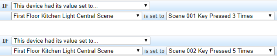 pressed 3 mes. You must use the trigger “device had its value set to” and apply it to the “Central Scene” device. Note that “Scene