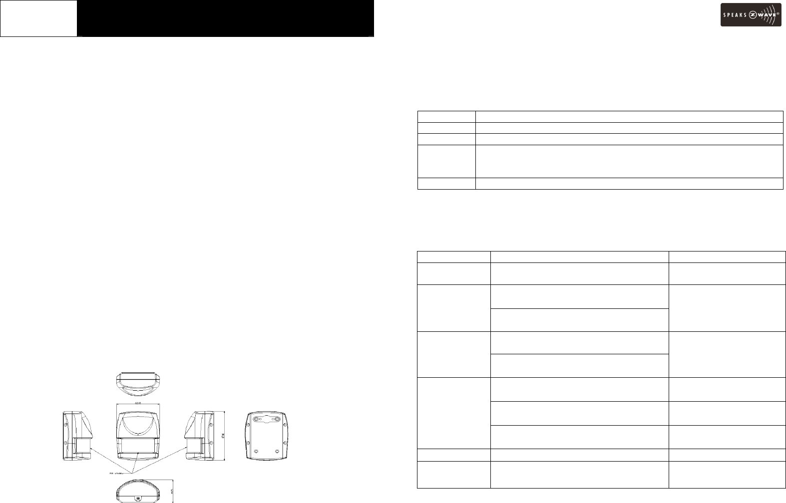The table below lists an operation summary of basic Z-Wave functions. Please