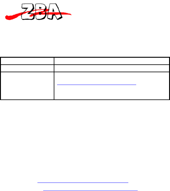 in this document is subject to change without notice. ZBA assumes no responsibility for any errors or