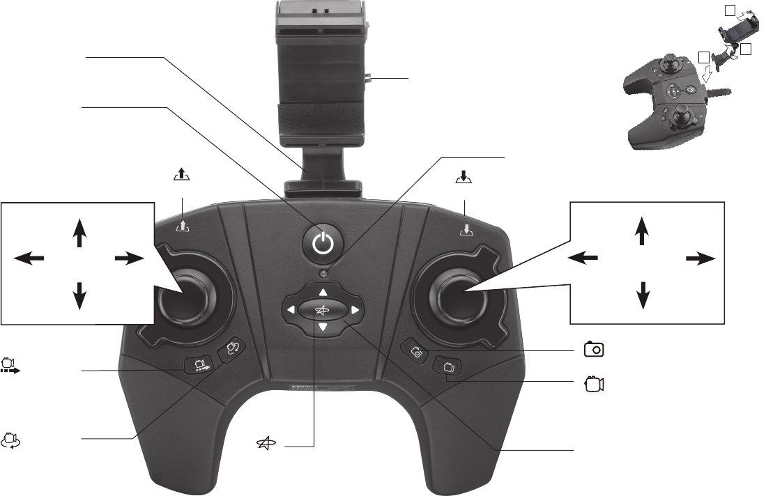 (not included) loaded in your drone. Snap the device holder onto the remote
