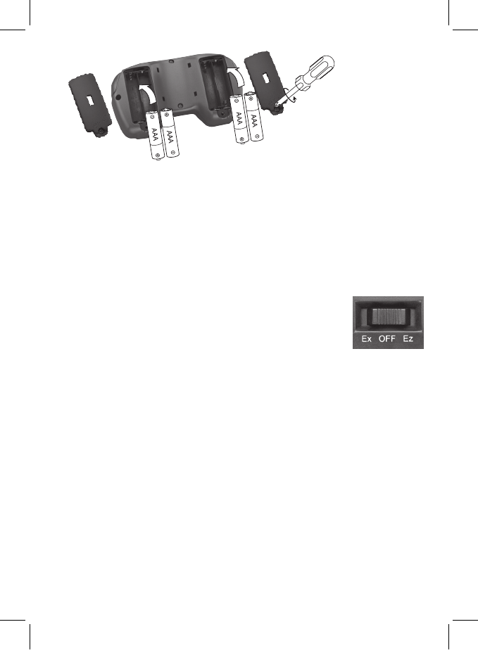 four AAA batteries (not included), matching the polarities (+ and –)