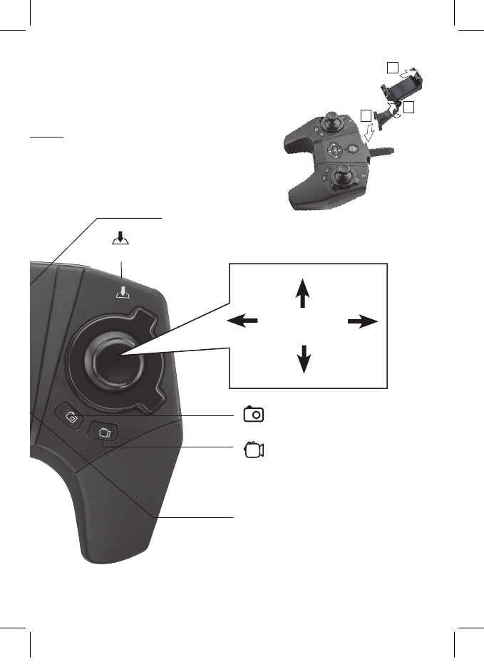 (not included) loaded in your drone. Snap the device holder onto the remote