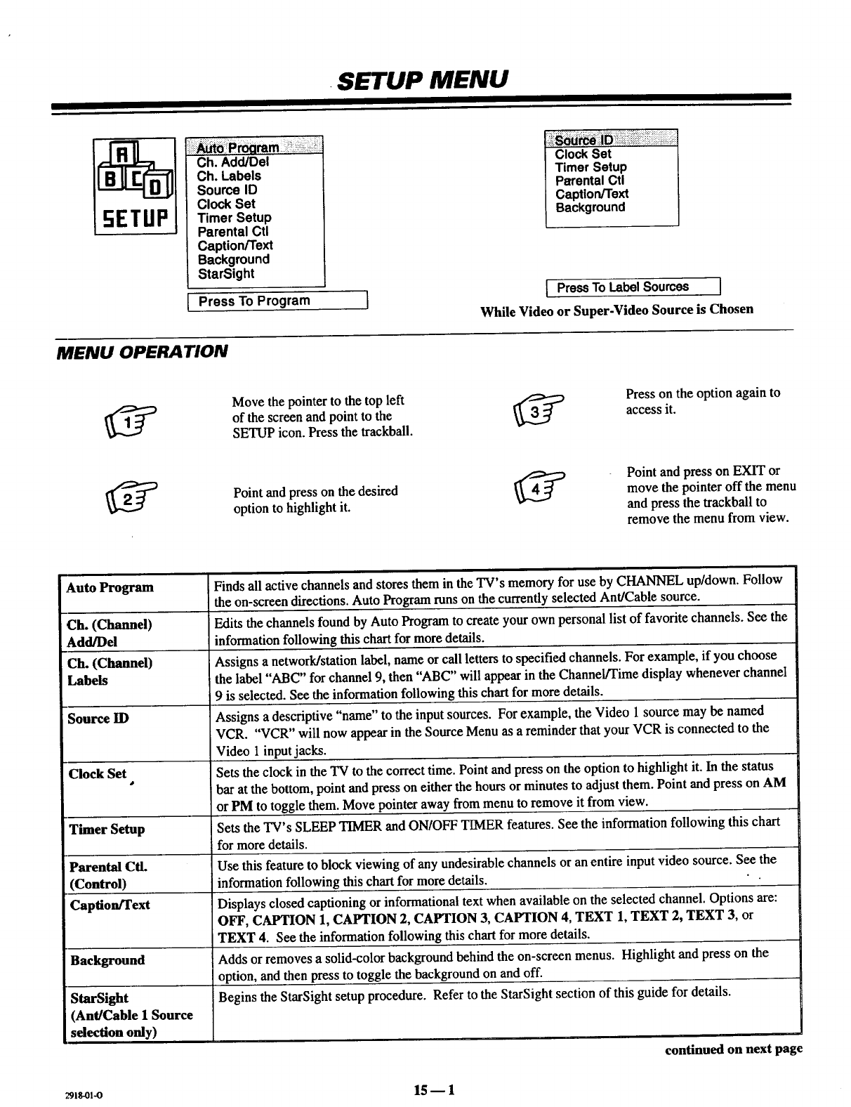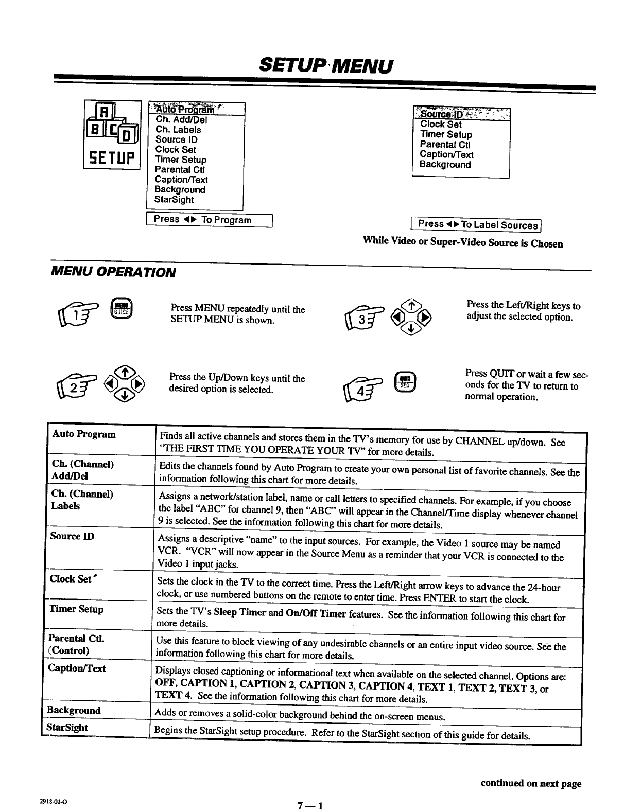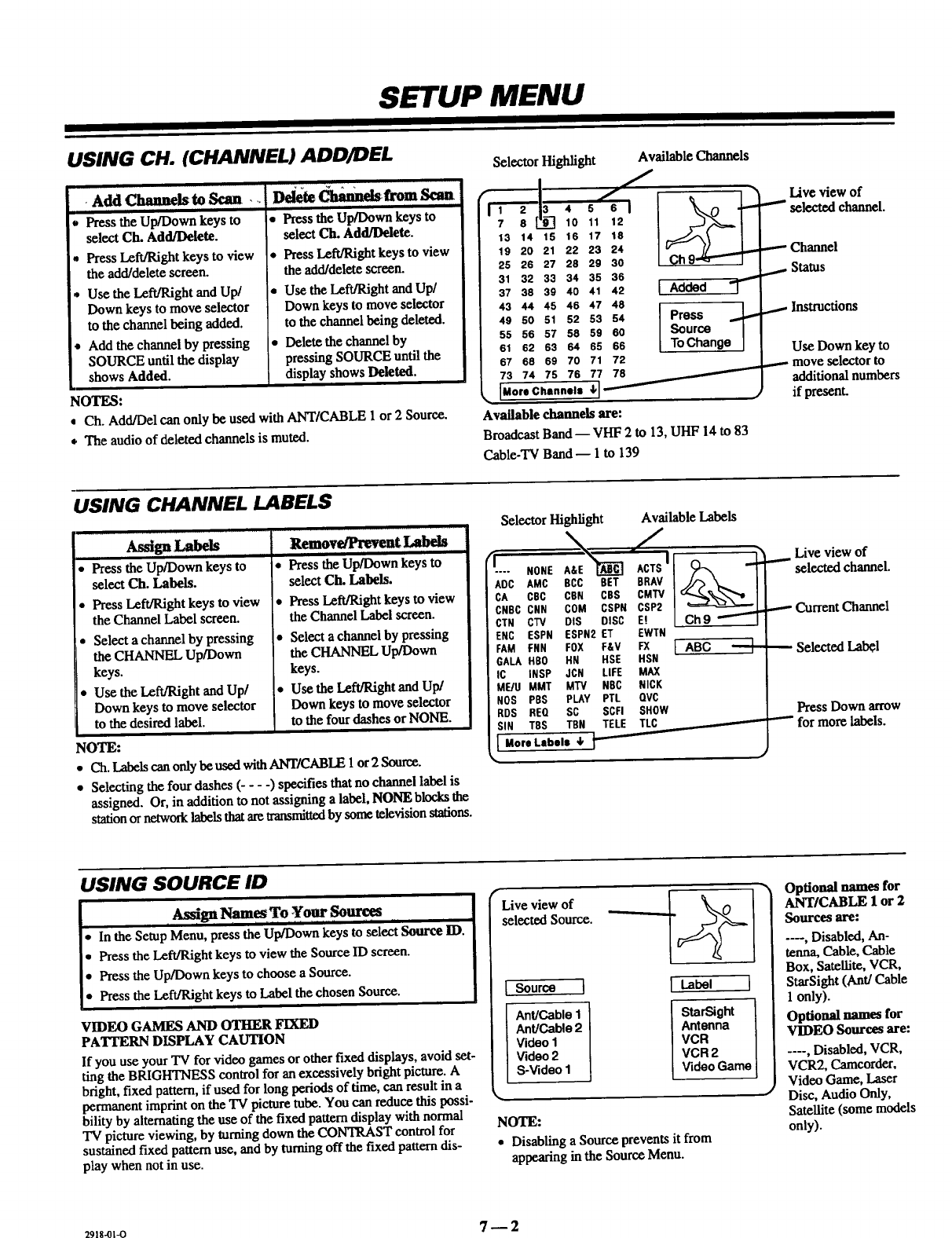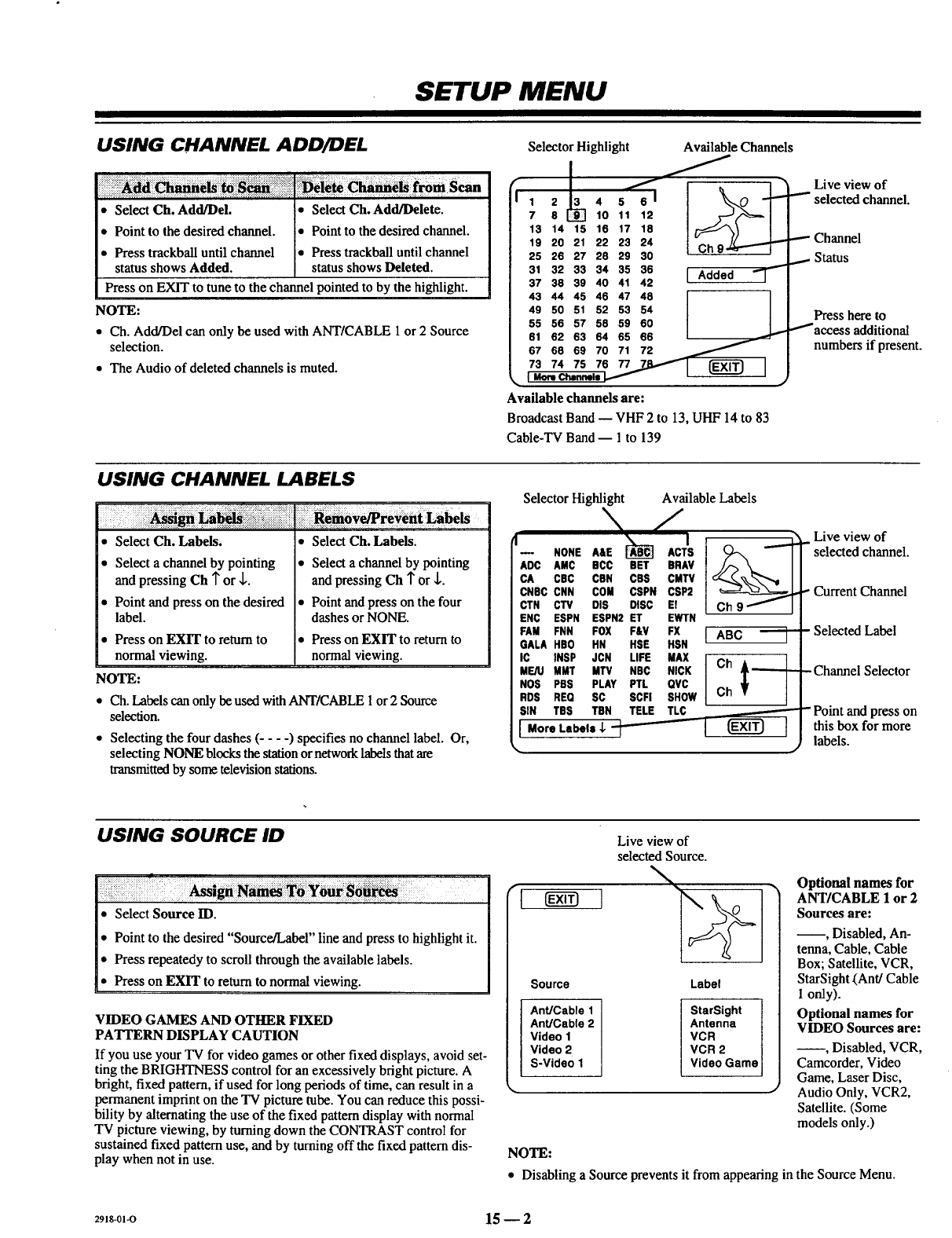 Auto Program, Ch. Add/Del, Ch. Labels, Source ID,