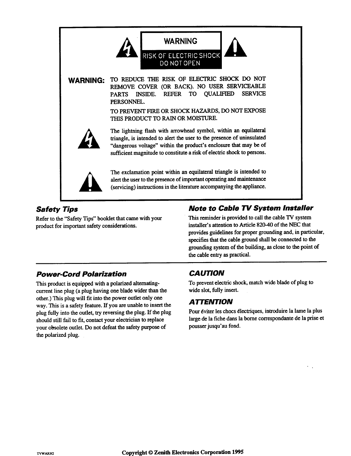 User Manual: ZENITH ZENITH Direct View Digital 27 to 40 TV Manual ZENITH Direct View Digital 27 to 40 TV Owner's Manual, ZENITH Direct View Digital 27 to 40 TV installation guides