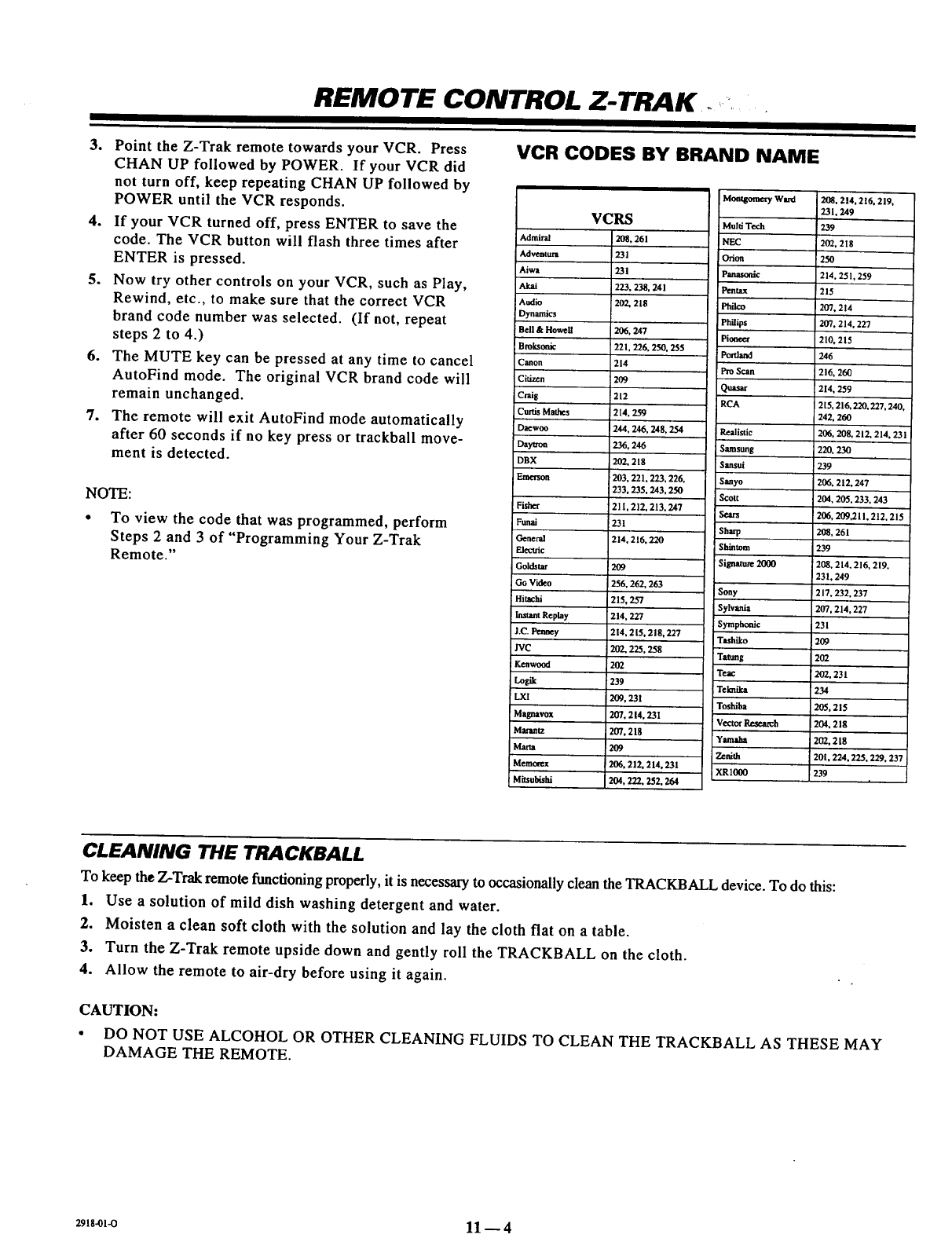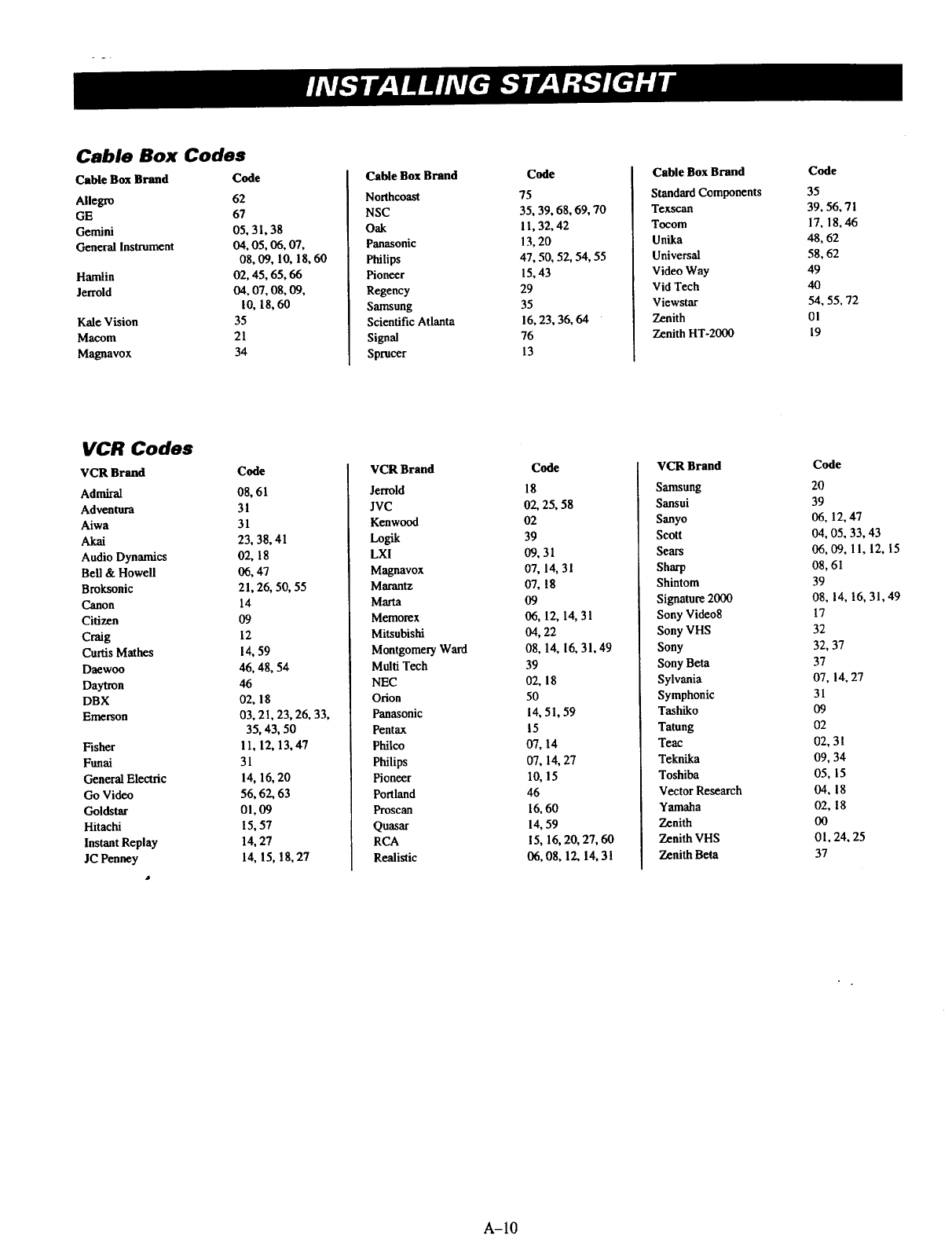 brand of equipment. See "Cable Box Codes" and "VCR Codes" charts.