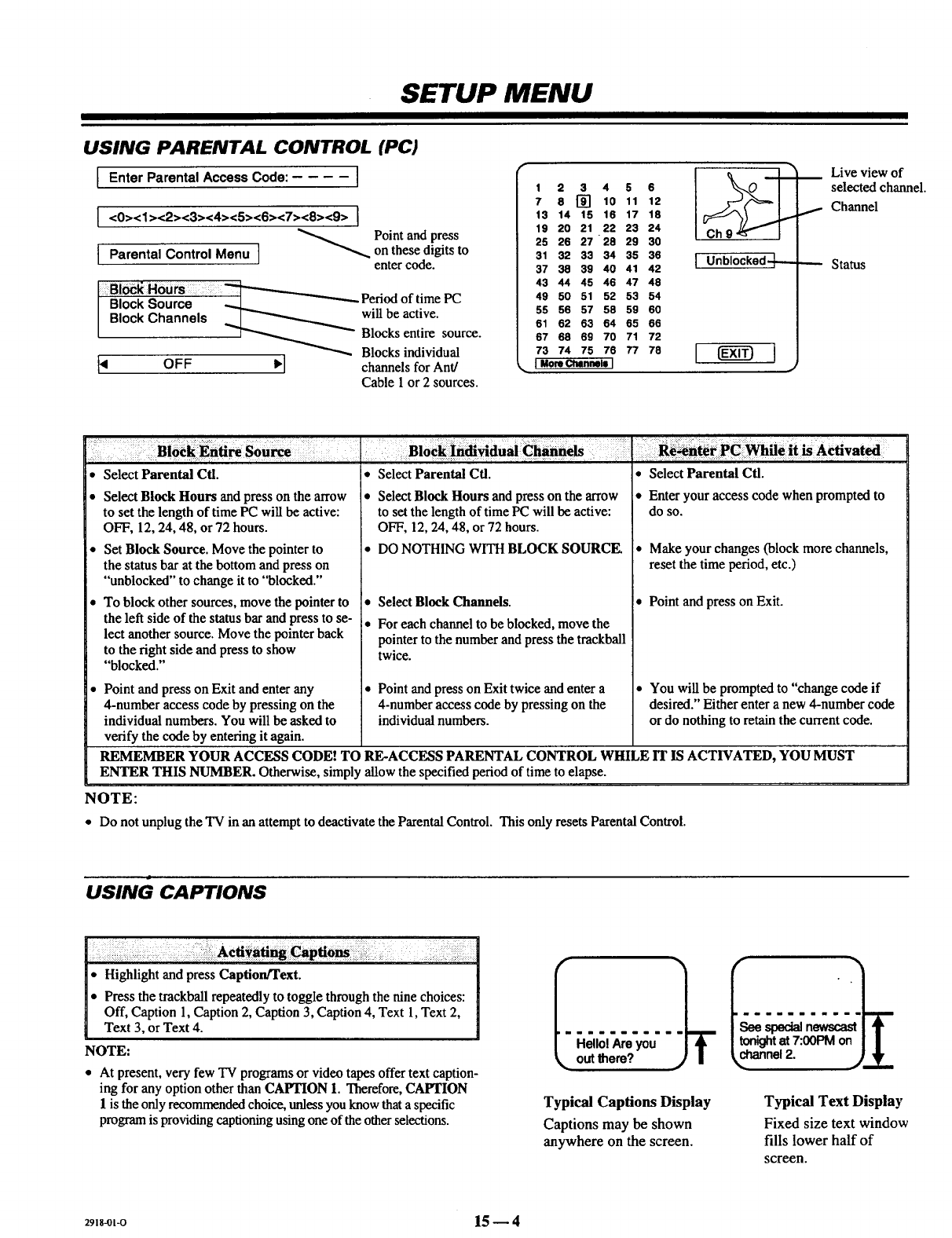 Clock Set, Timer Setup, Parental CtL Option/