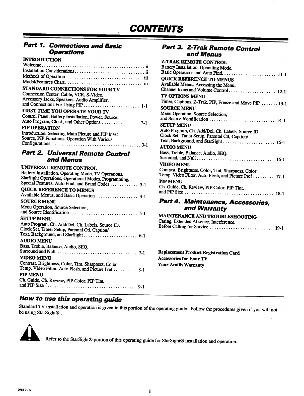 Methods of Operation................................. iii