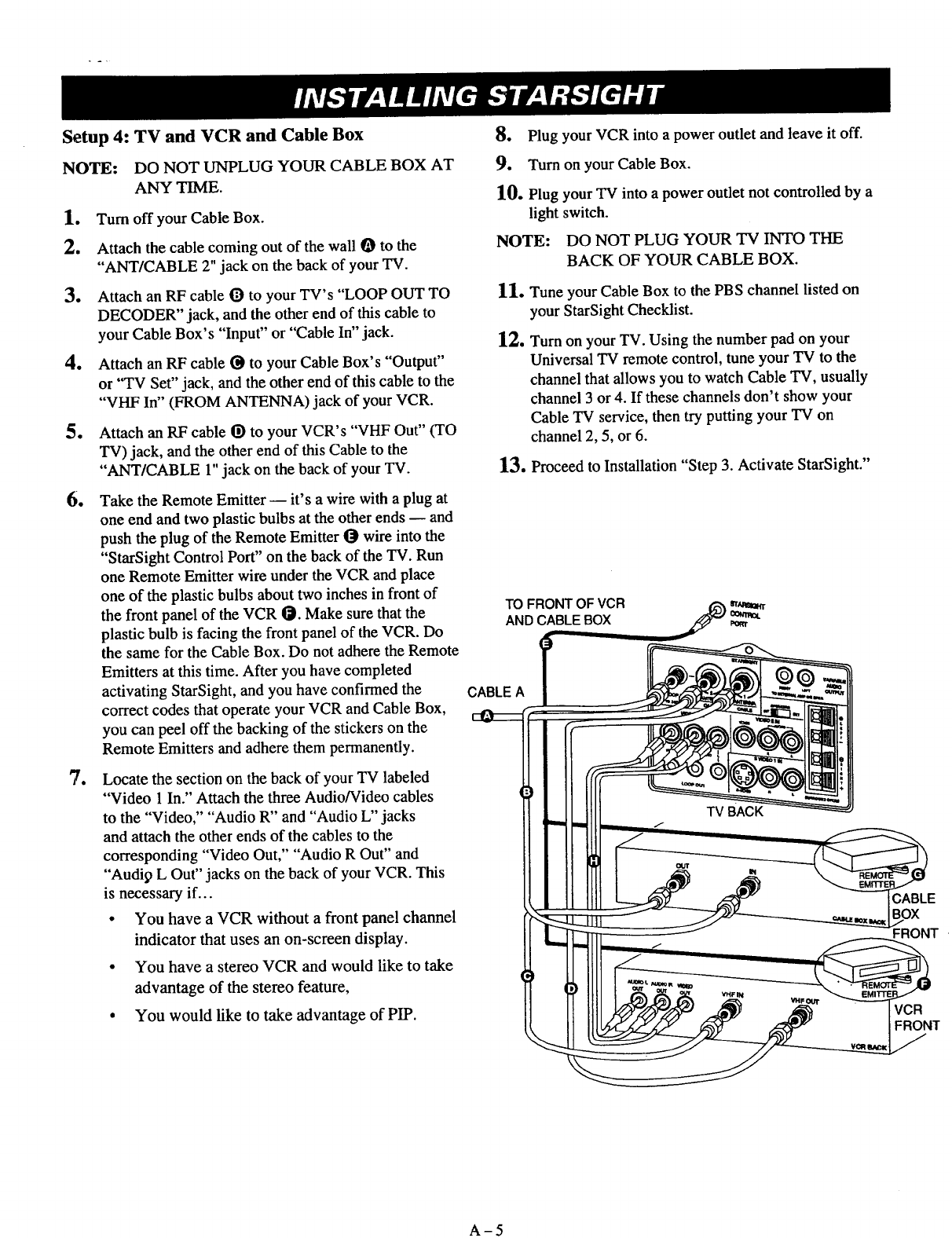 few inches in frontof the frontpanel of your VCR andCable Box.