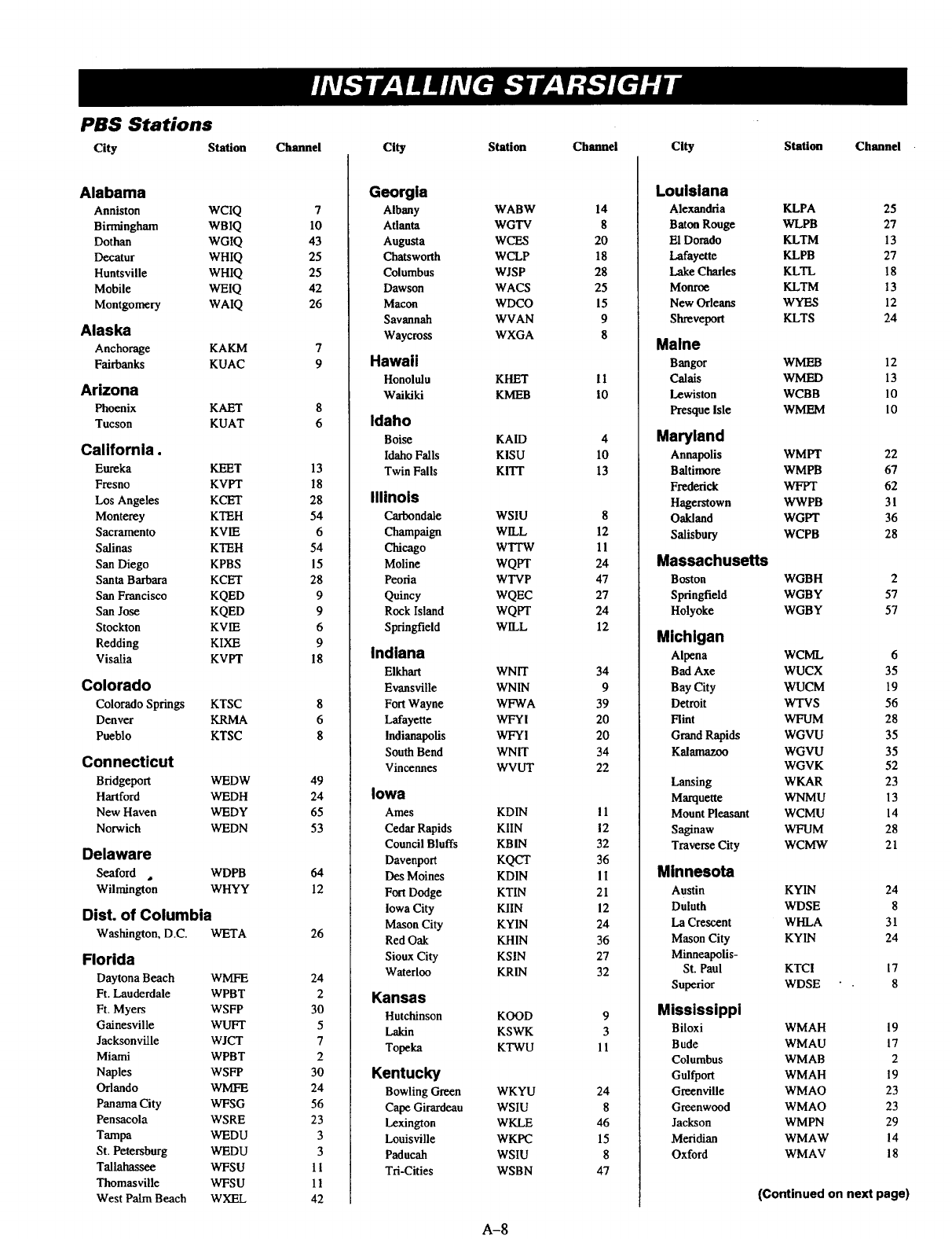 StarSight's list of channels does not match those Call the StarSight Help Desk at 1-800-628-STAR, or fax corrections directly to