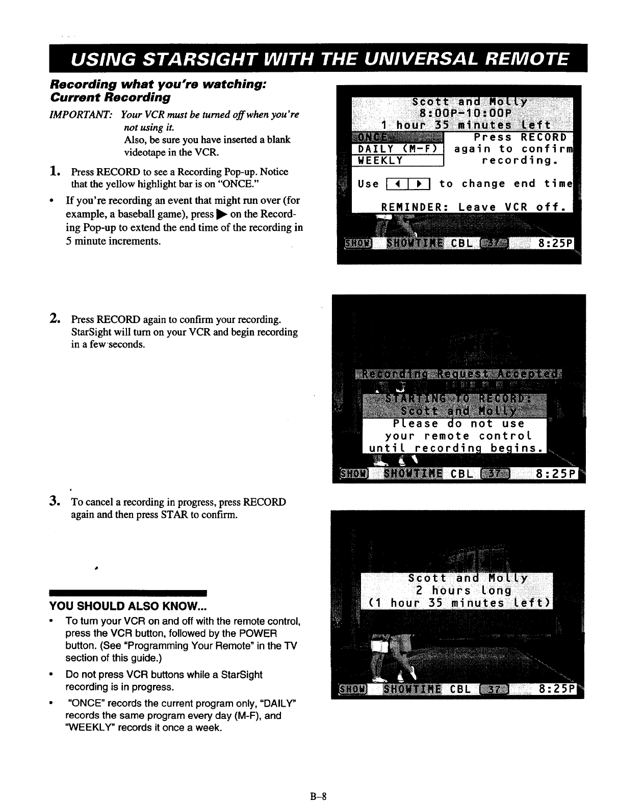 The program wasn't recorded. 1. YOUR VCR MUST BE LEFT OFF WHENEVER YOU ARE NOT
