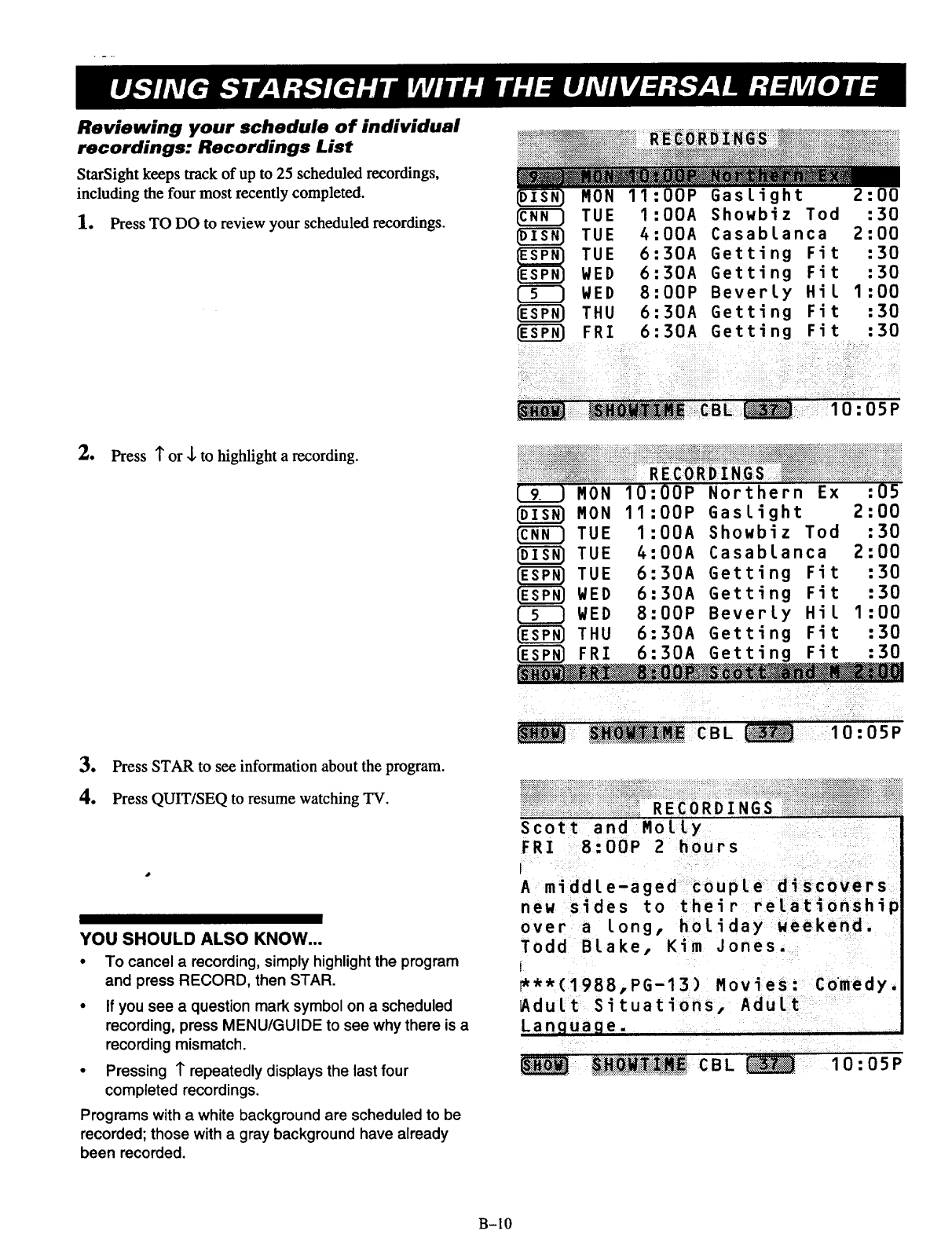 the Recordings list. information in the Grid Guide. Position the highlight bar on the question mark and