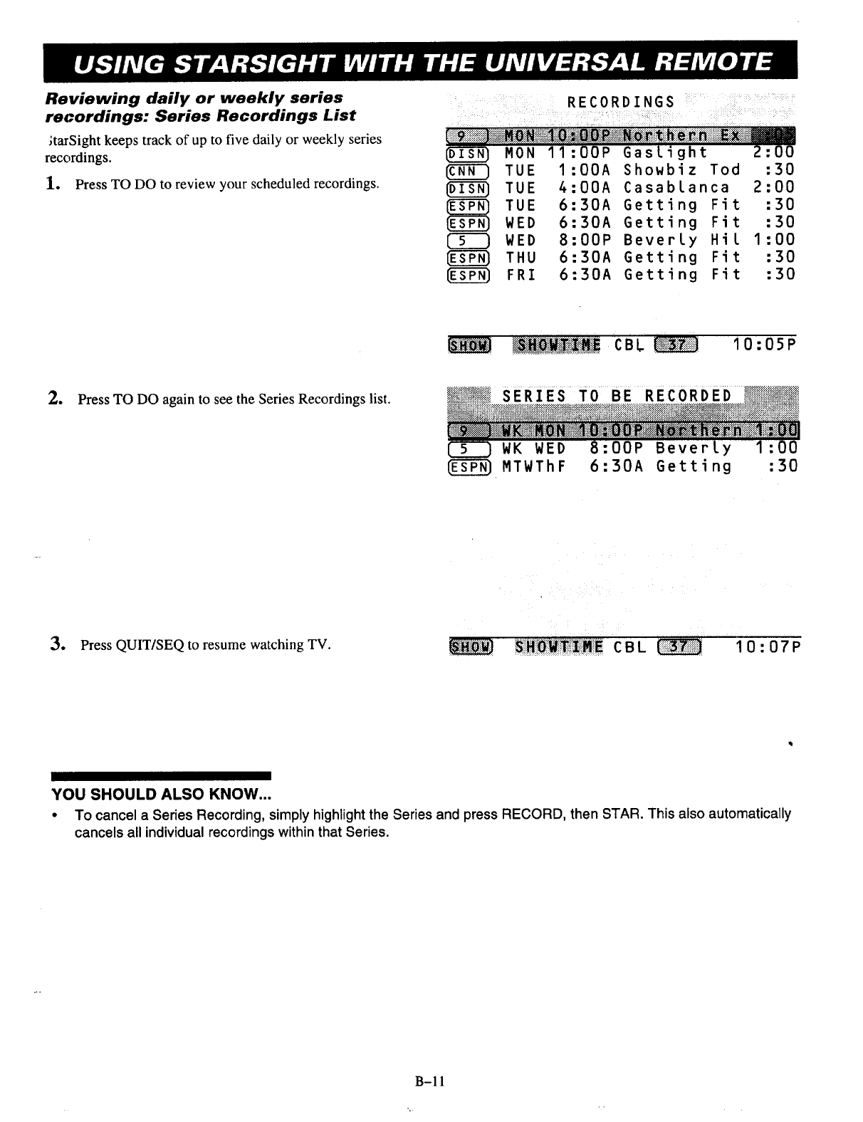 NOTE: LEAVE YOUR CABLE BOX ON AT ALL TIMES.