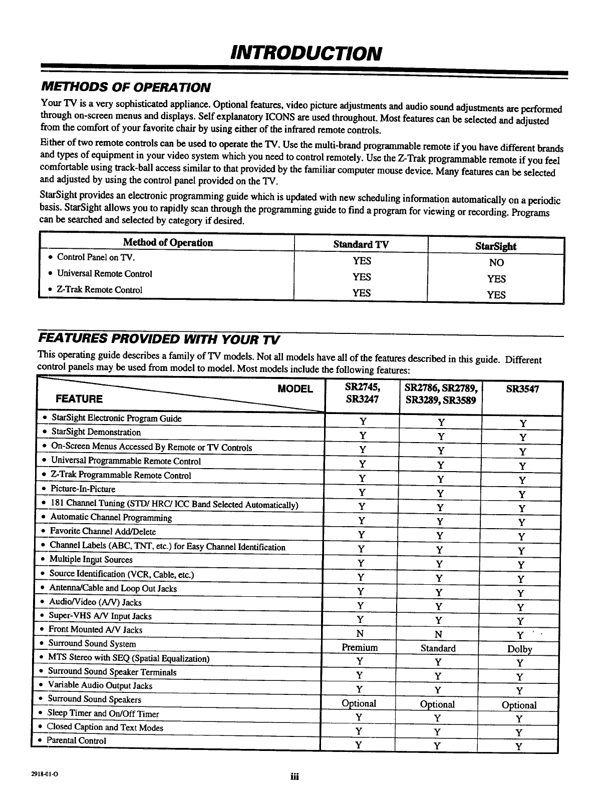 Model/Featnres Chart ................................. iii