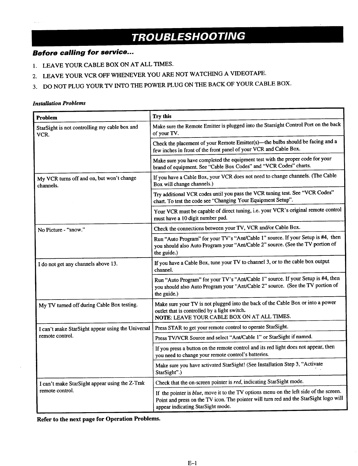 Refer to the next page for Operation Problems.
