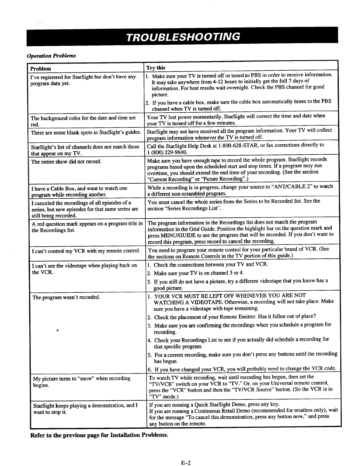 Refer to the previous page for Installation Problems.