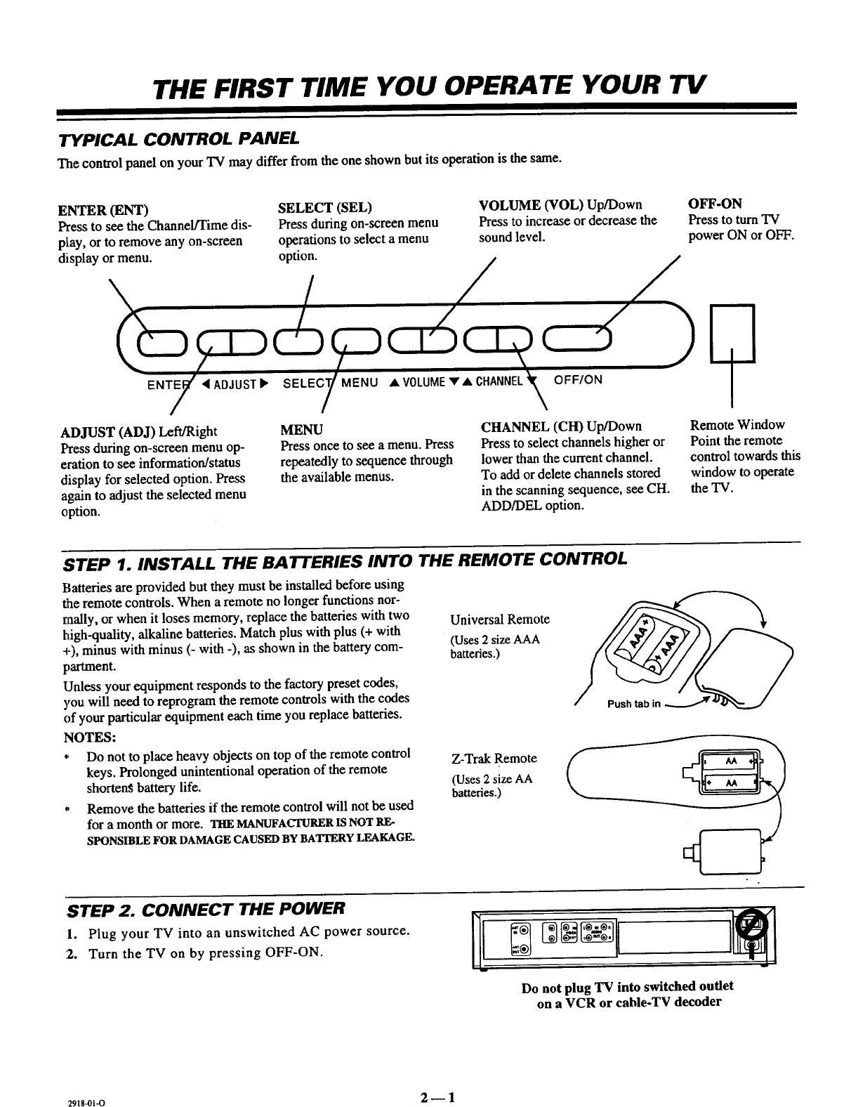 FIRST TIME YOU OPERATE YOUR TV