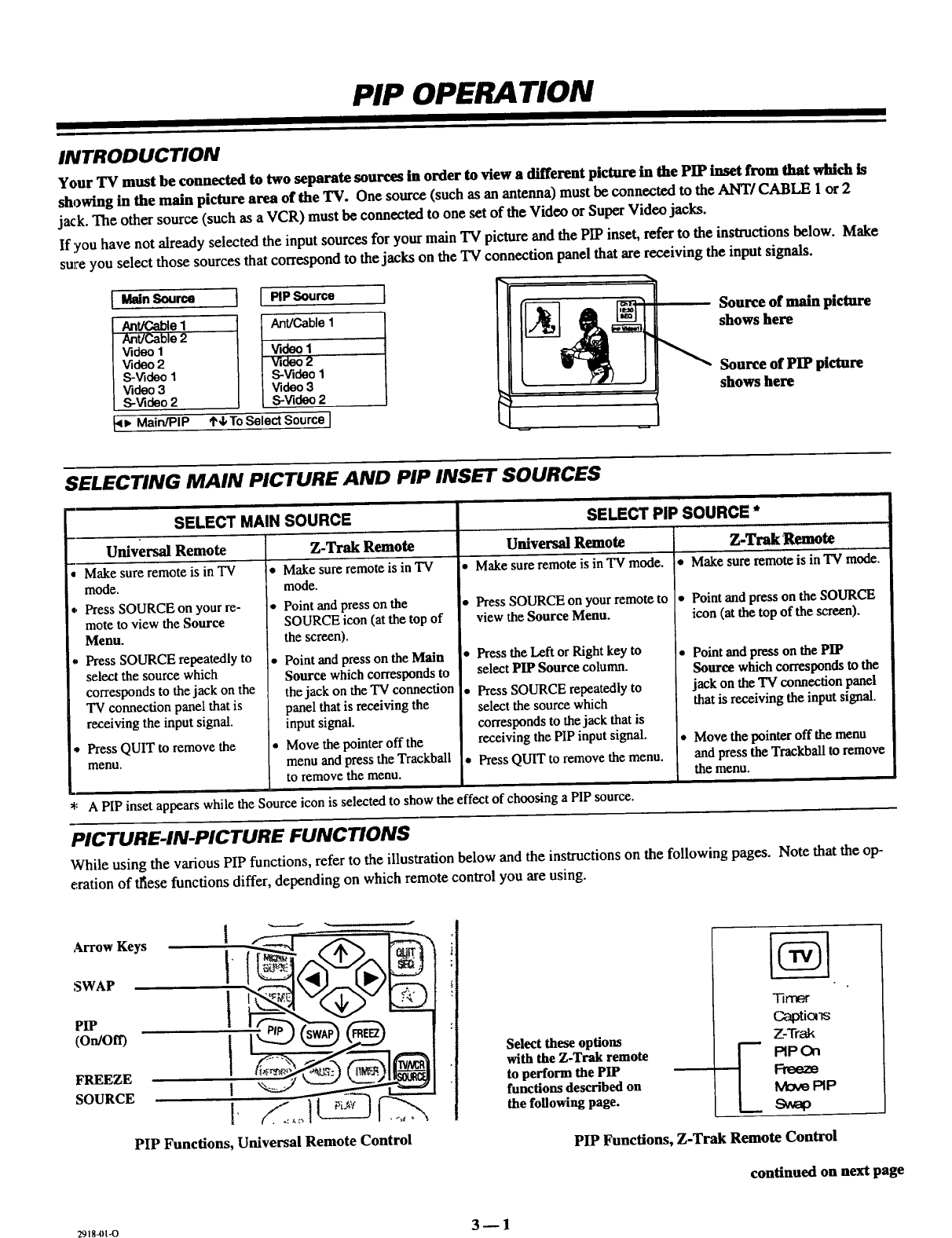 hltroduction, Selecting Main Picture and PIP Inset