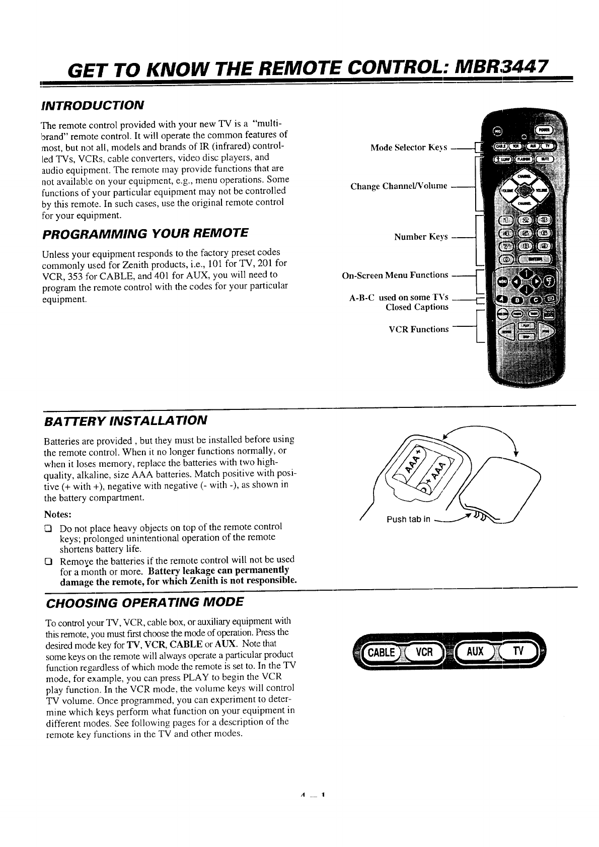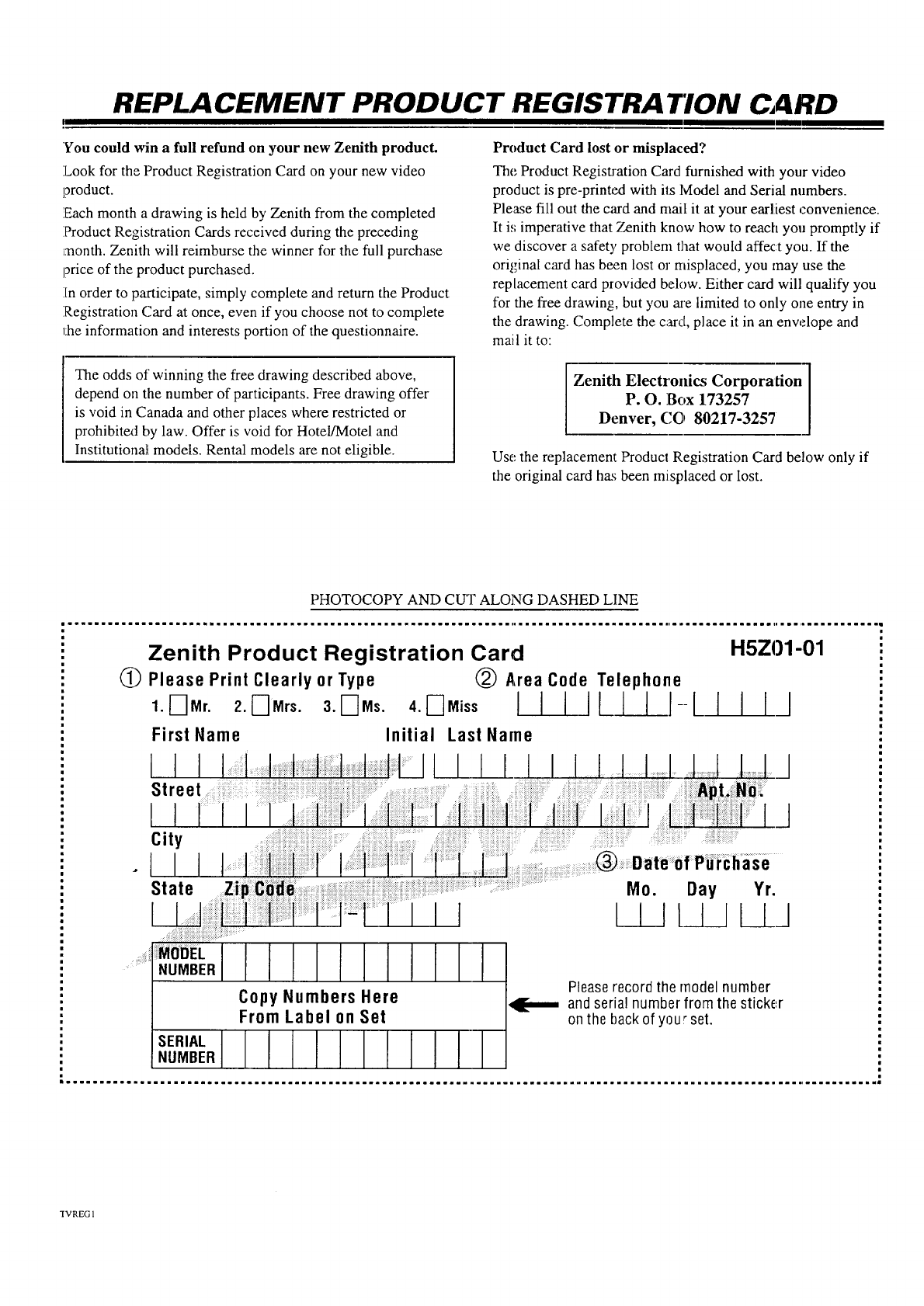 your Product Registration Card. It is imperatiw: that zenith know