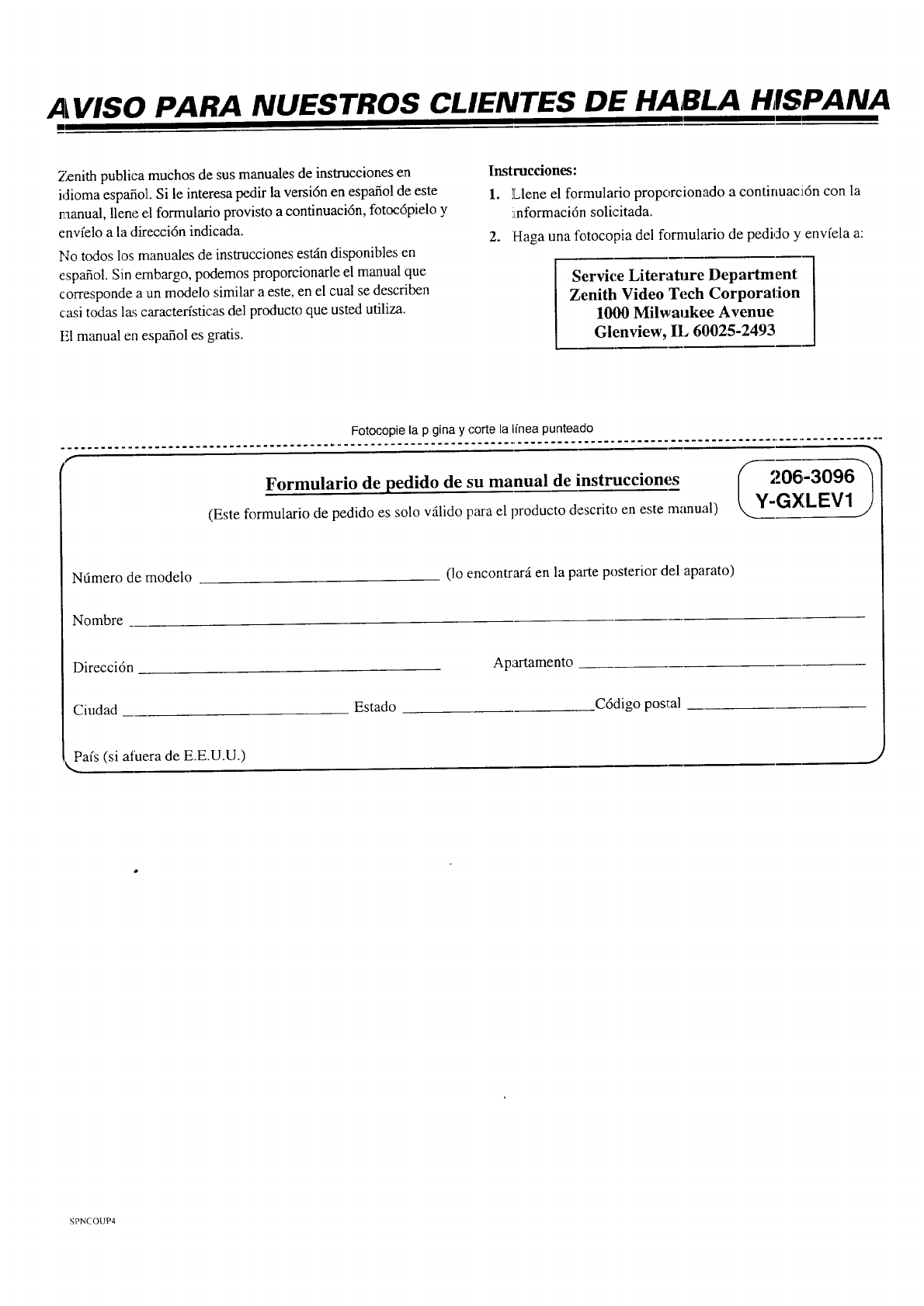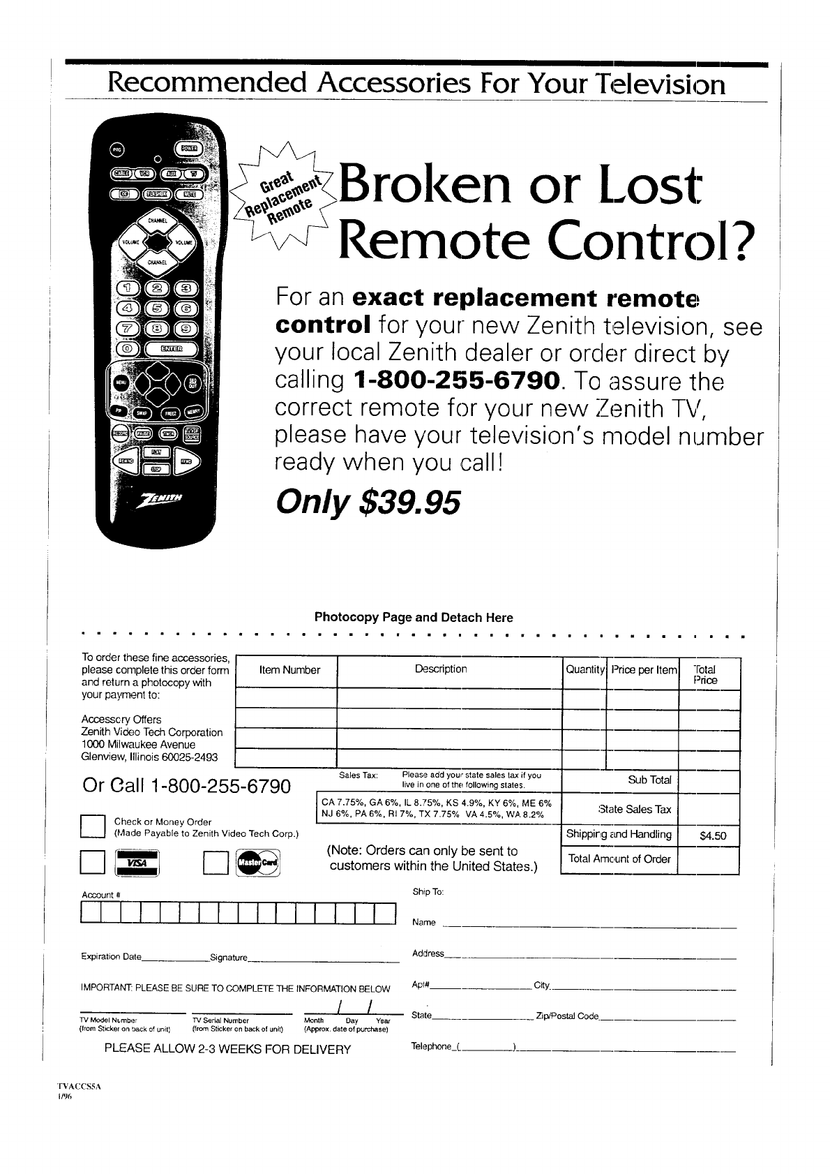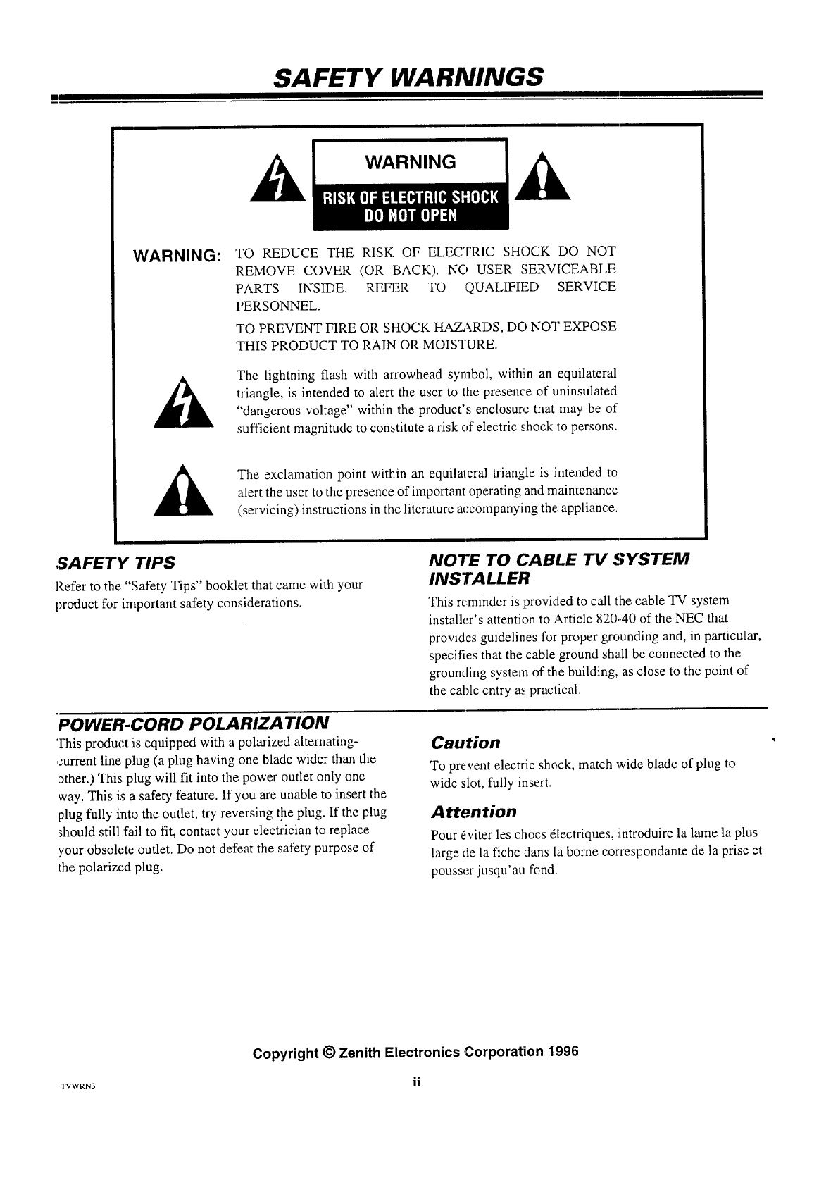 Copyright ©Zenith Electronics Corporation 1996