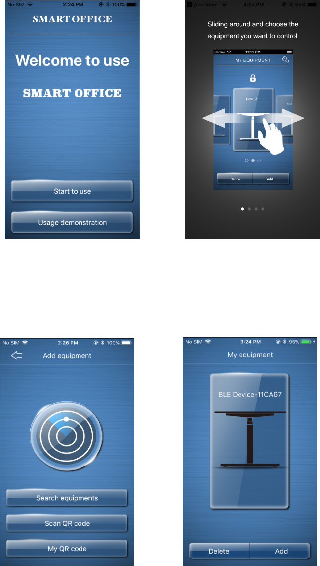 demo interface. Click "Start to use" to enter the “Add equipment” interface.