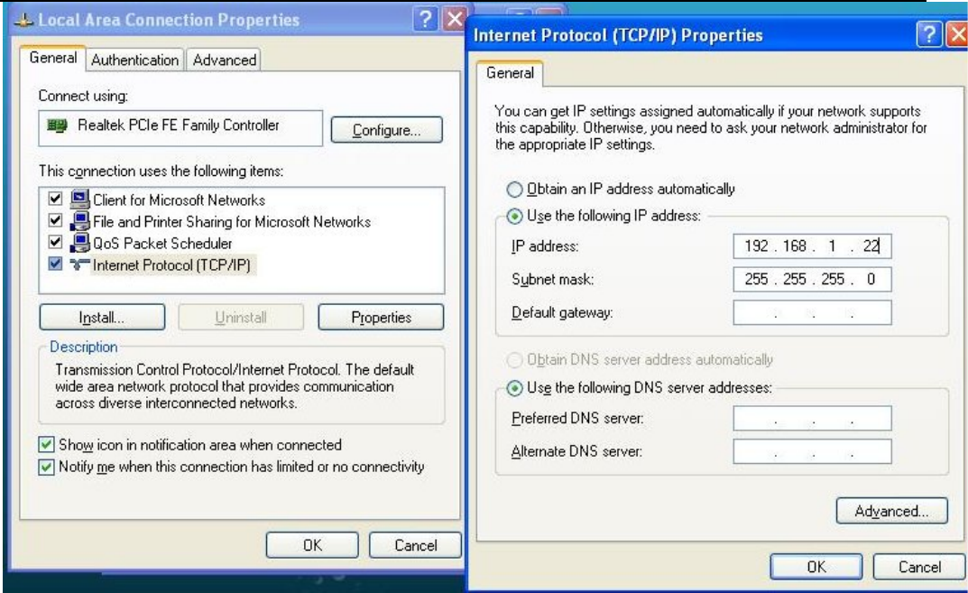 Second, set the computer TCP/IP in to static IP 192.168.1.X ( X means any number between 2 to