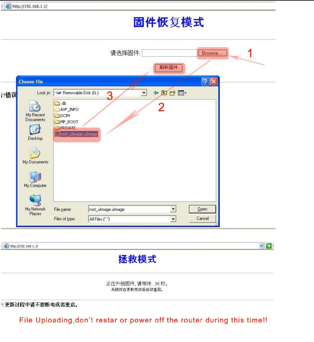(During uploading time,don’t move or power off the router!! Otherwise will cause the router