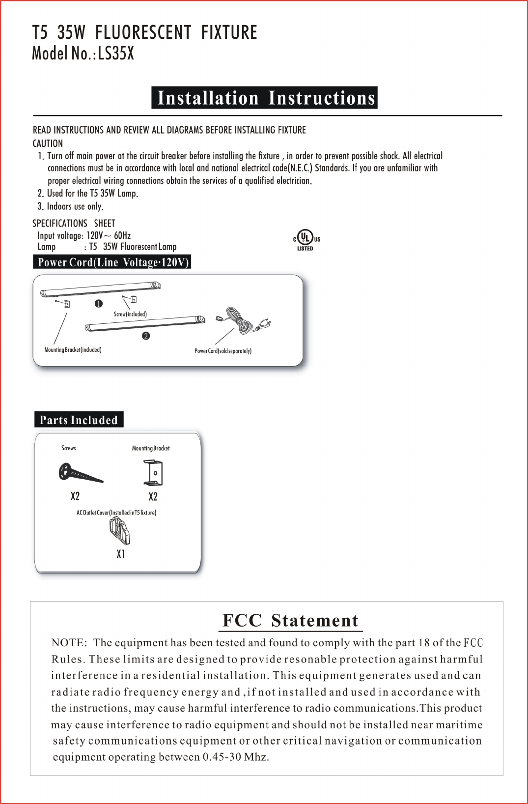 ZHONGSHAN LIGHT SPEED ELECTRIC APPLIANCES LS-35X Portable Luminaires (T4/T5 Fluorescent Fixture) User Manual