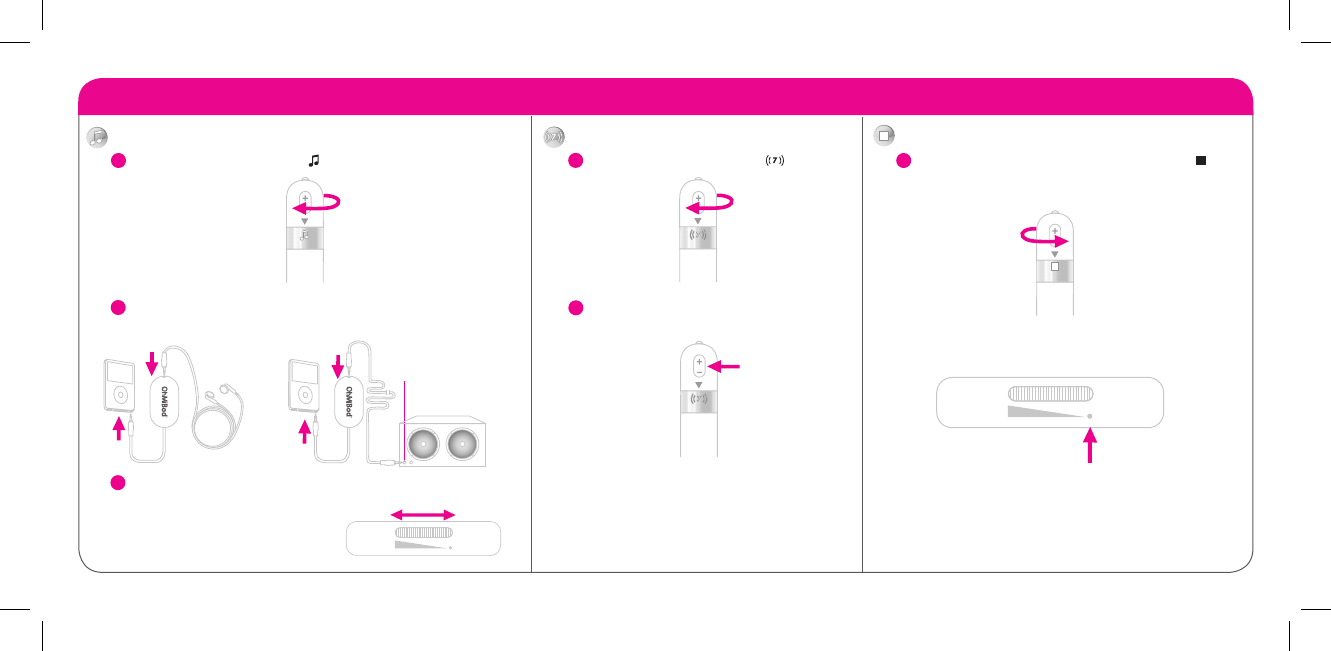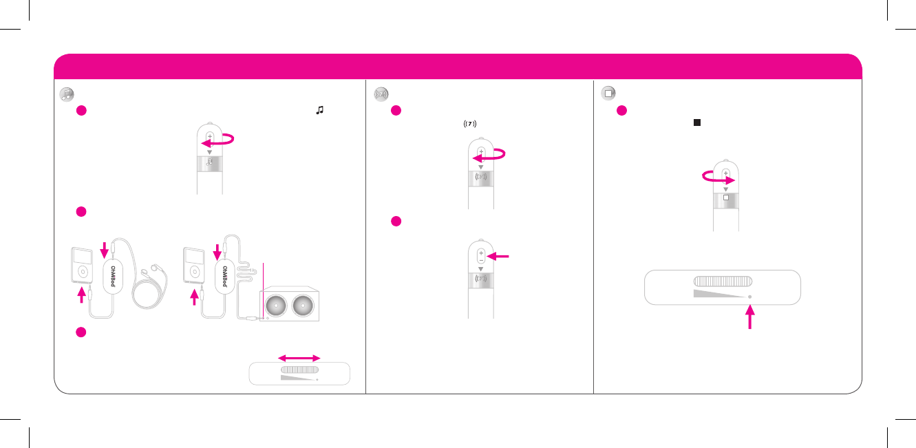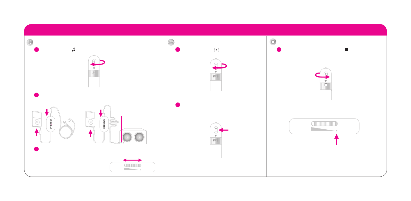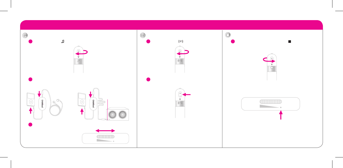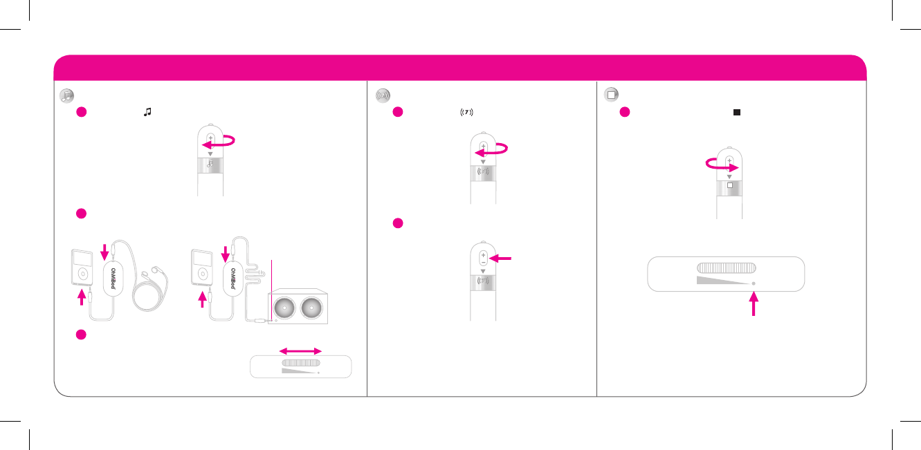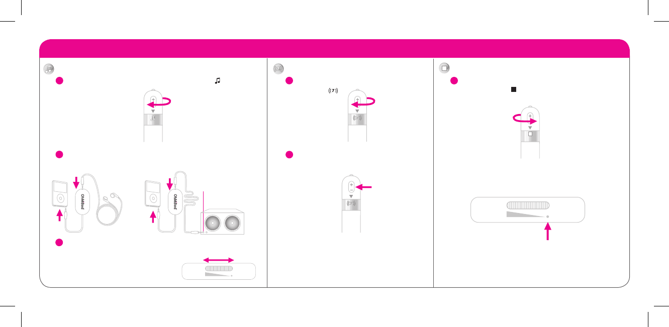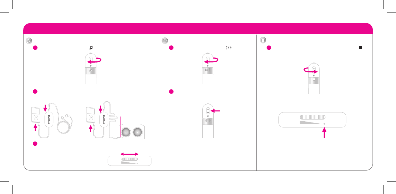 2 Connect iPod & earbuds to transmitter and select desired listening