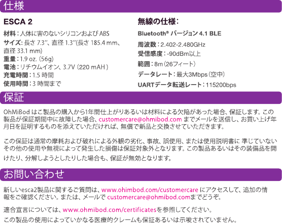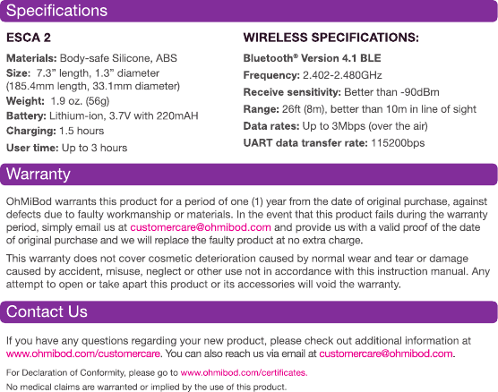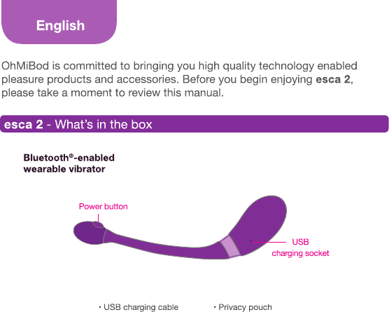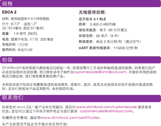 ZHUHAI WINGPOW EROTIC and NOVELTY OMBES02 Esca 2 User Manual