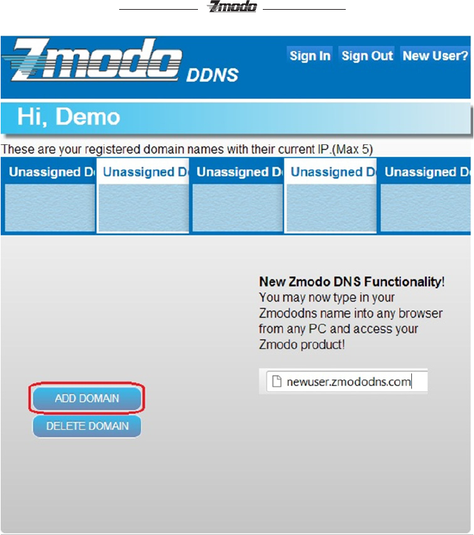 d. Enter the full registered domain name into the domain eld (for this example, it would be mydvr.zmododns.