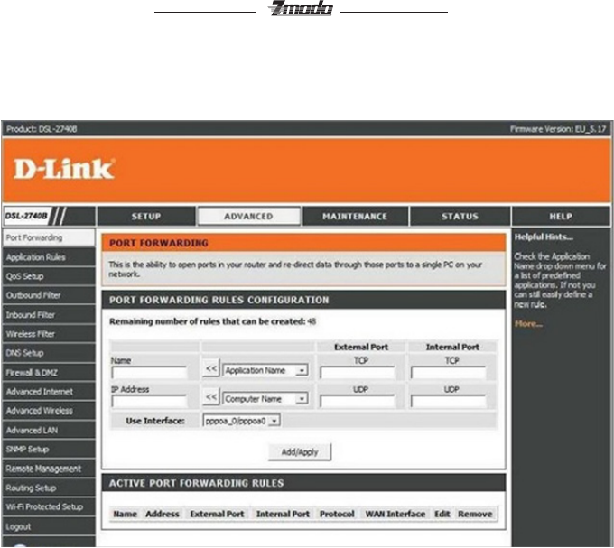 Click Advanced, then Port Forwarding to enter the port forwarding section of the router.