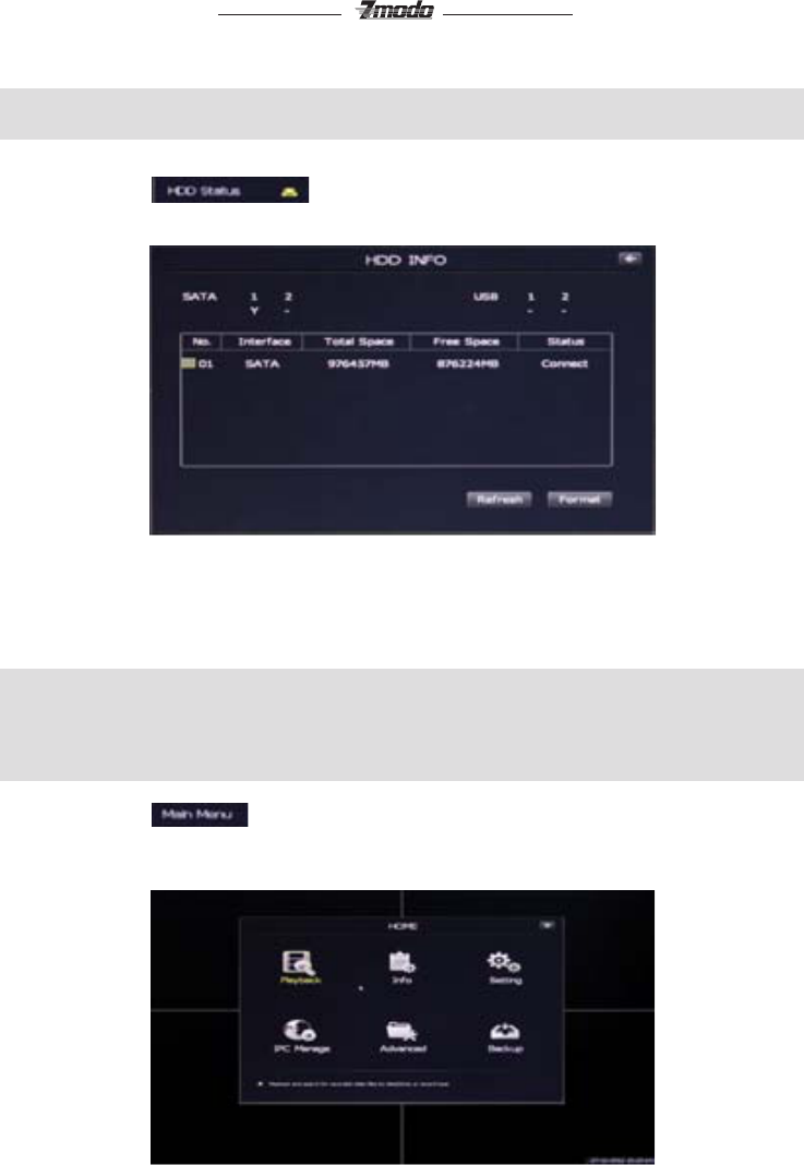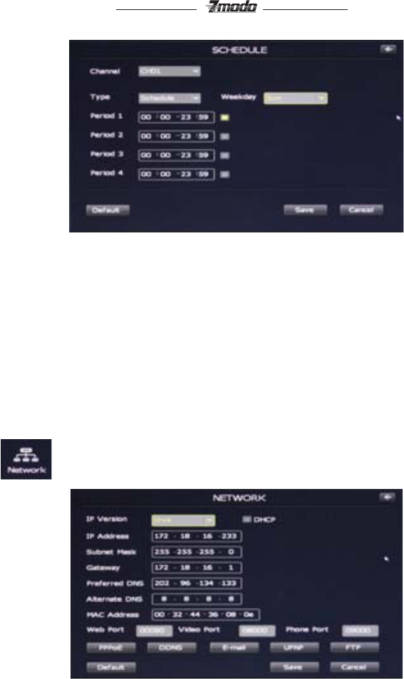Schedule No menu options, click directly into sub-menu settings 24 hours recording
