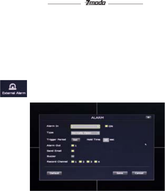 Alarm Mode Trigger Record, Email Alert, Audio Output, Alarm output. etc