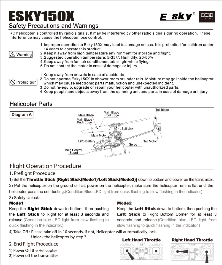 ZONDA HOBBY TECHNOLOGIES ELECTRONIC LIMITED ESKY E150X Users manual