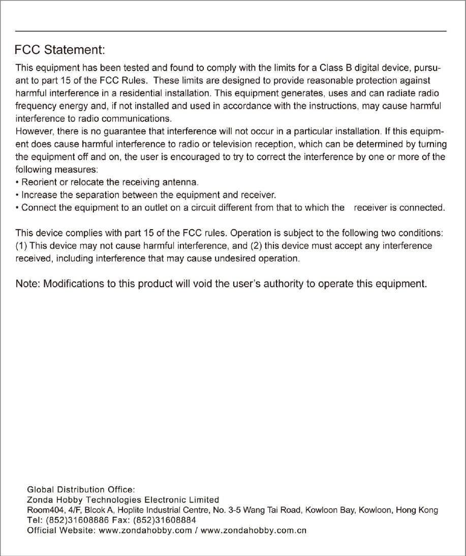 ZONDA HOBBY TECHNOLOGIES ELECTRONIC