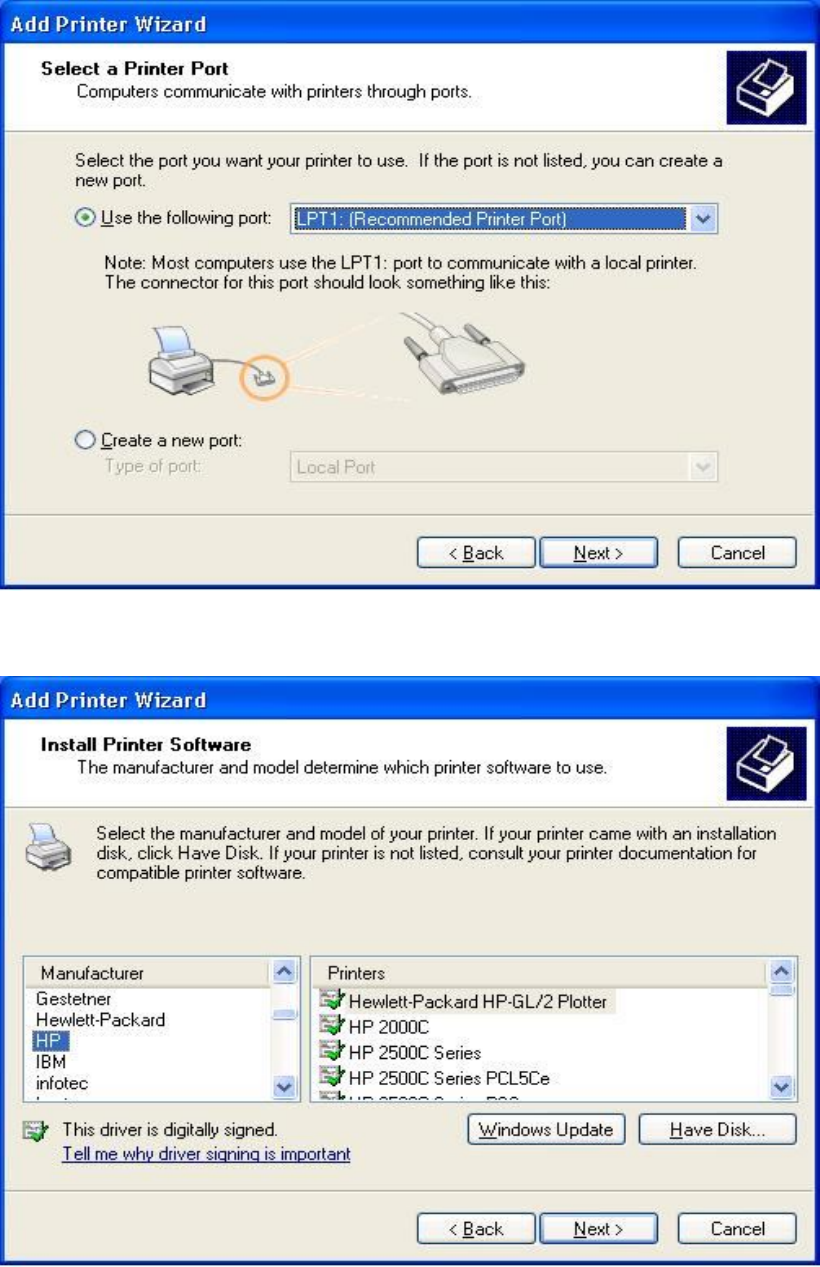 5. Choose it from the “Add Printer Wizard”.